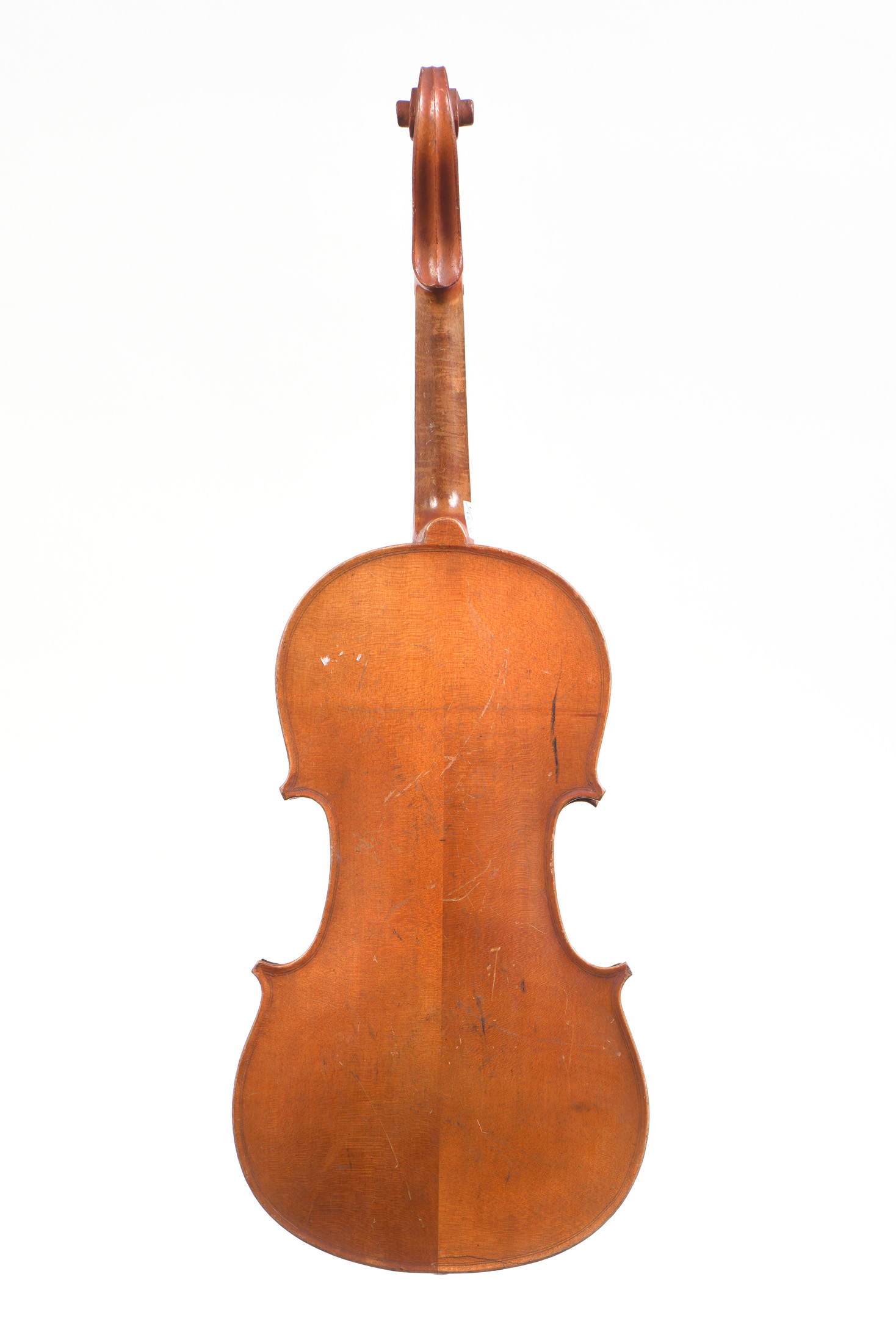 fait à Mirecourt au début du XXe. Portant une étiquette "copie de Stradivarius...". Fond d'une pièce. Vernis brun sur fond doré. 359 mm. En l'état: Importante cassure à la table. Usures, coins cassés... L'ensemble est à restaurer.