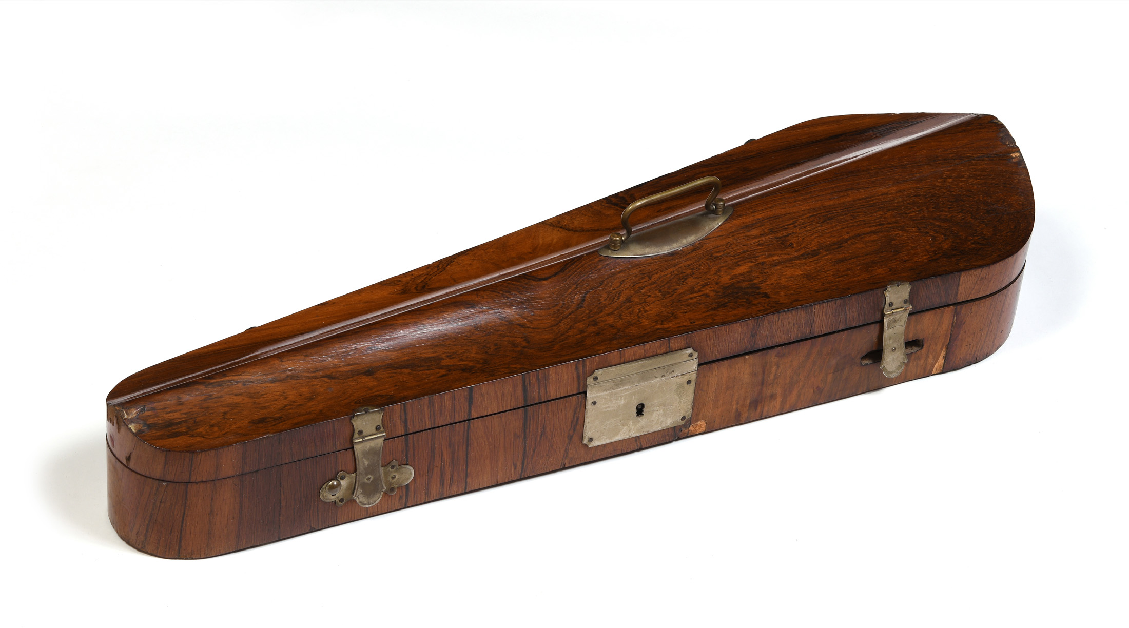 Fait au XIXe. En placage de noyer. Intérieur feutre rouge, Bon état. Quelques manques au placage extérieur.