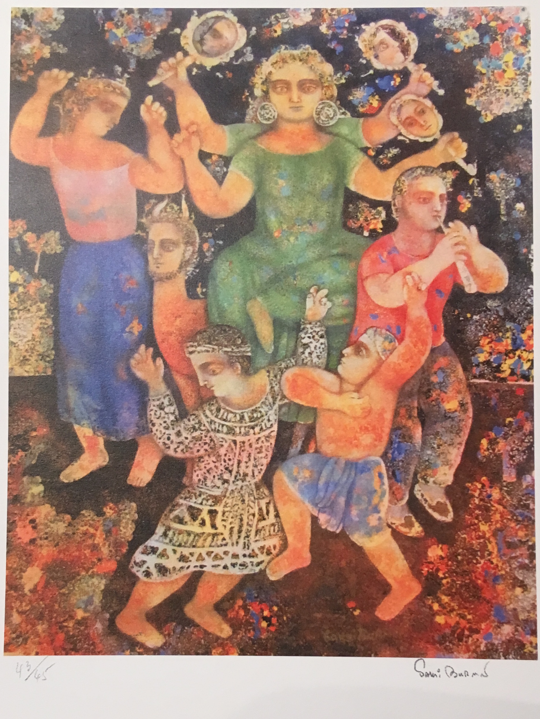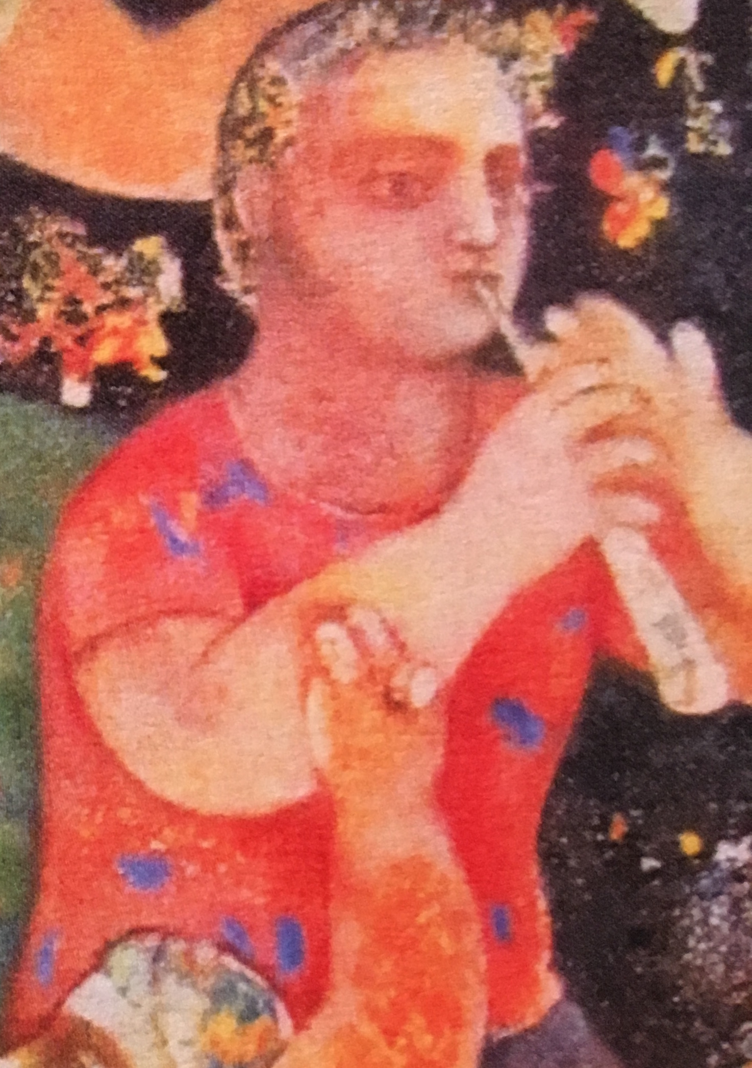 Joueur de flute et déesse aux miroirs. Digigraphie.