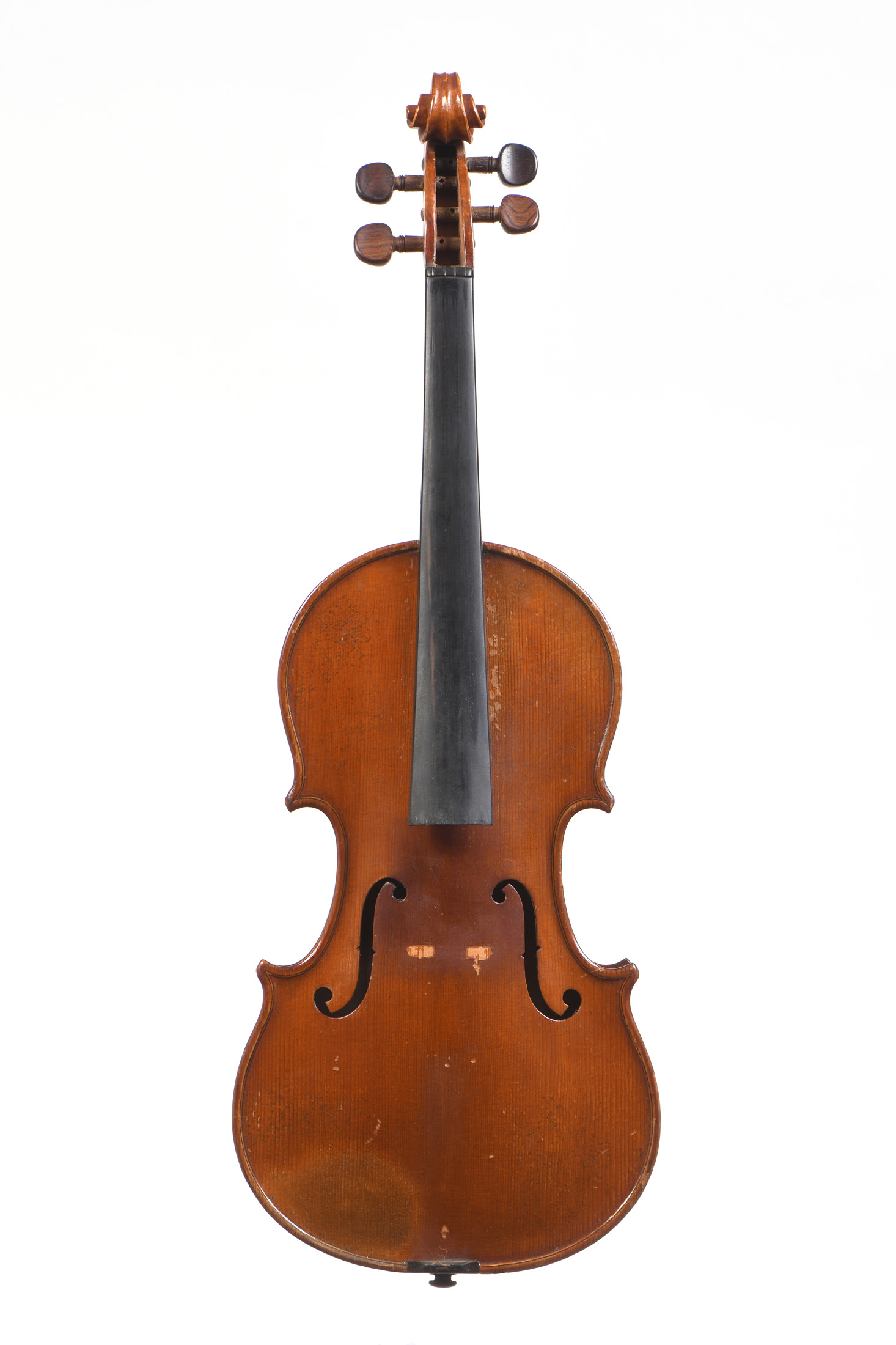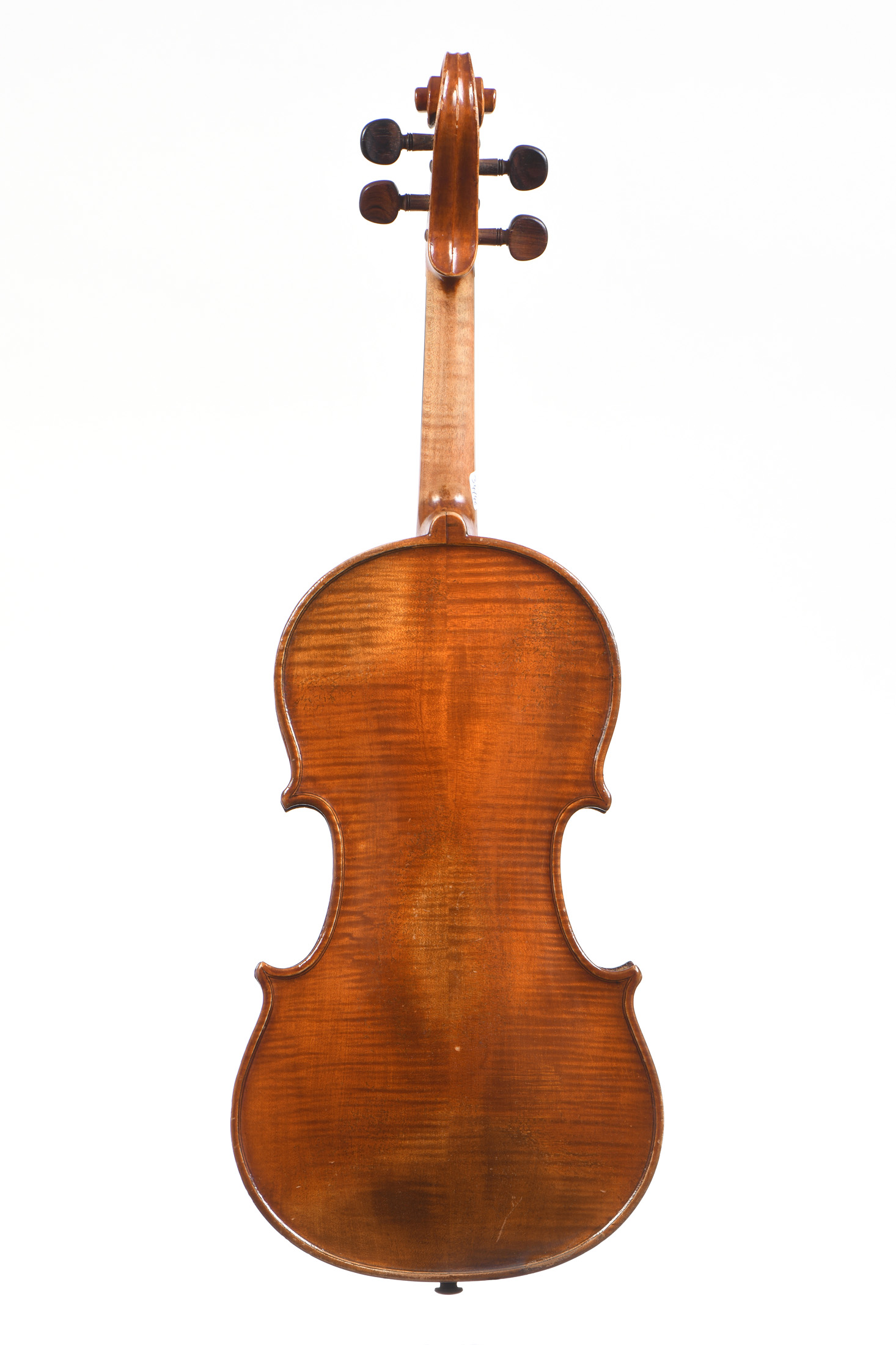 Fait à Mirecourt. Portant une étiquette "G.SANTORINO, Anno 1894. CM. GS". Fond de deux pièces. Vernis brun orangé sur fond doré. Bon état général. 360 mm. Bon état général.