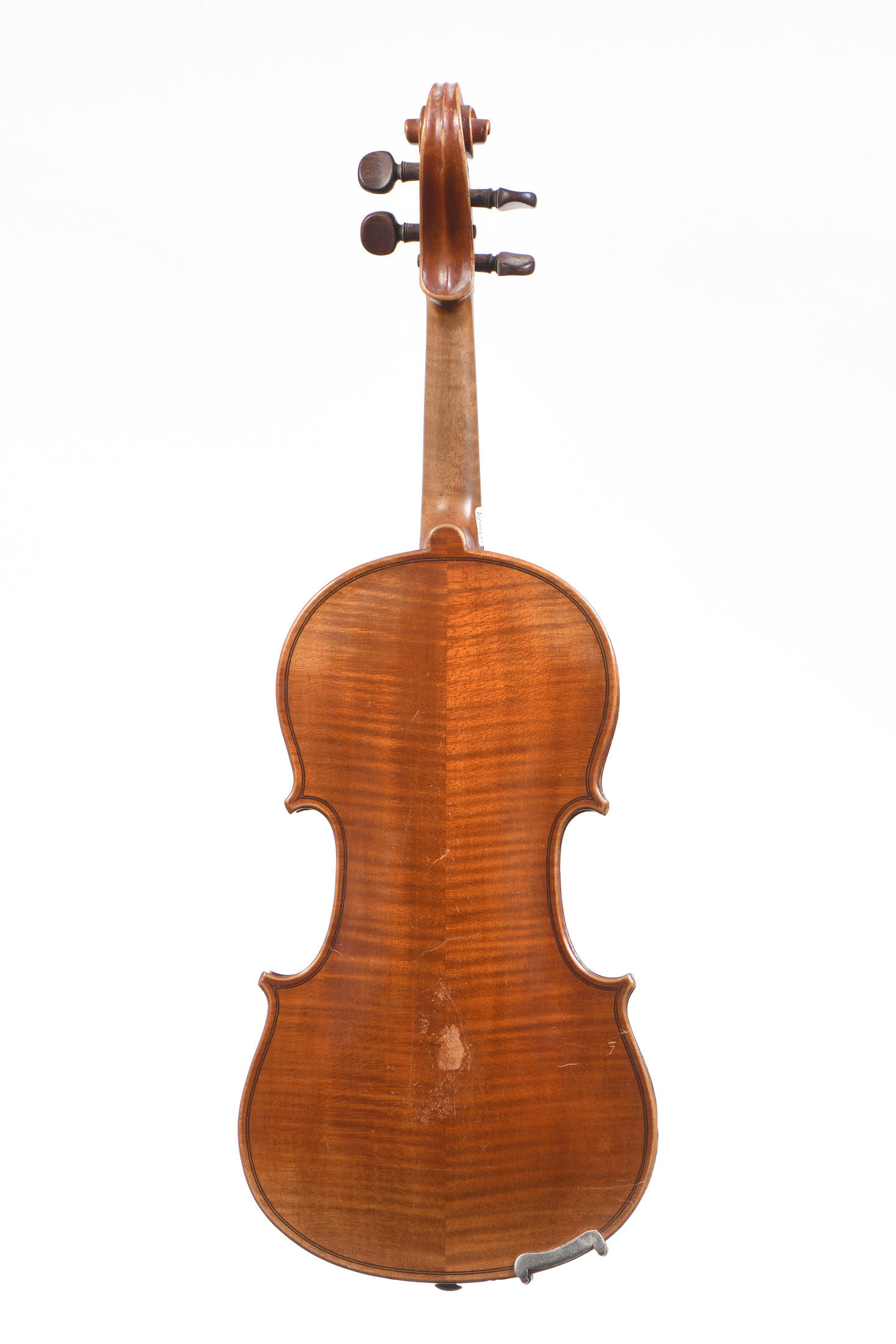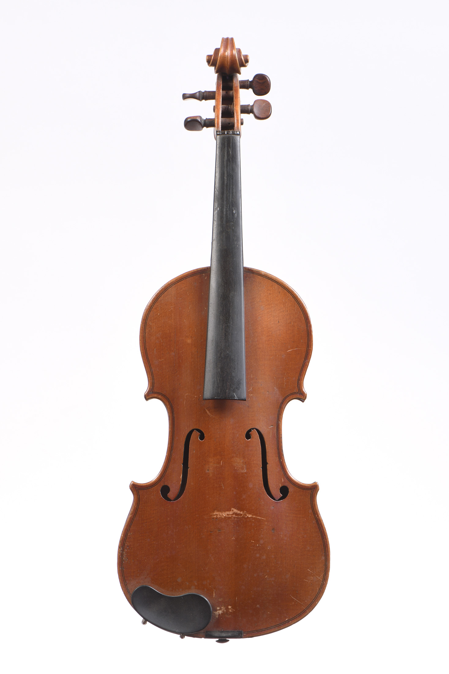 fait à Mirecourt au début du XXe. Portant une étiquette "Copie de Stradivarius". Vernis brun doré. Fond de deux pièces. Diverses usures.