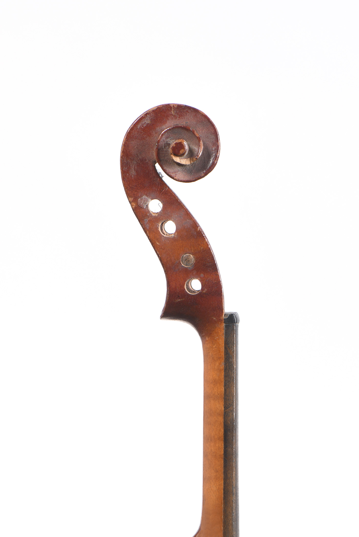 Un violon Ancien. Tête sculptée d'un homme barbu. A restaurer. En l'état. 360 mm.