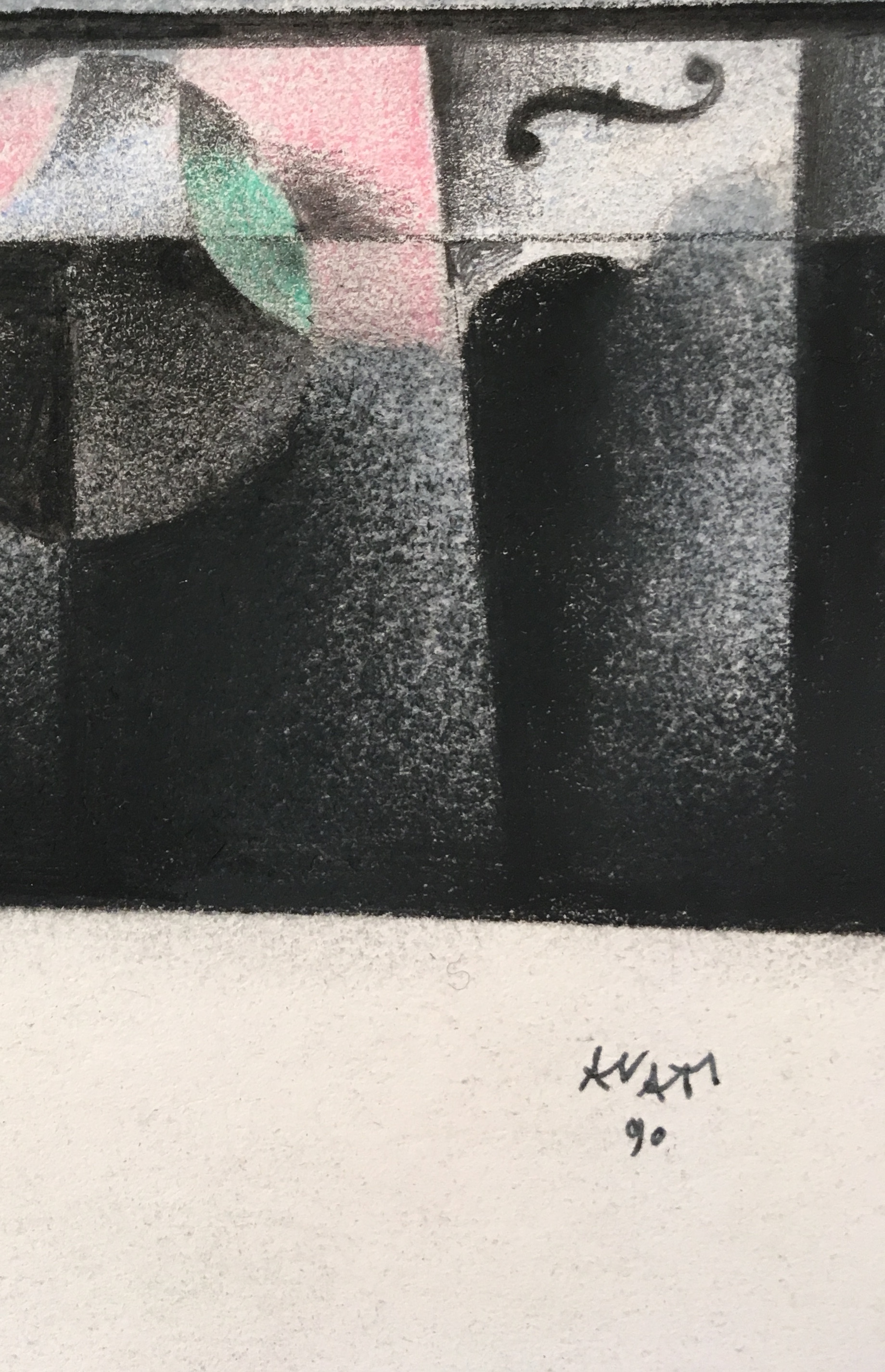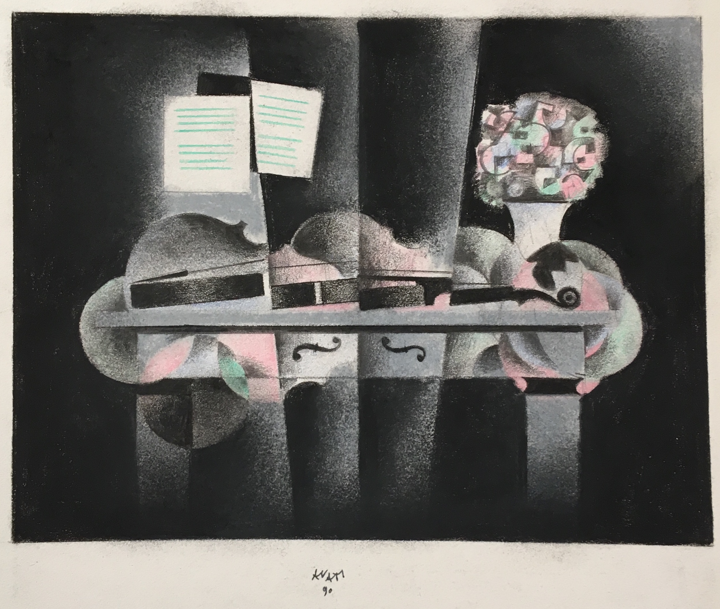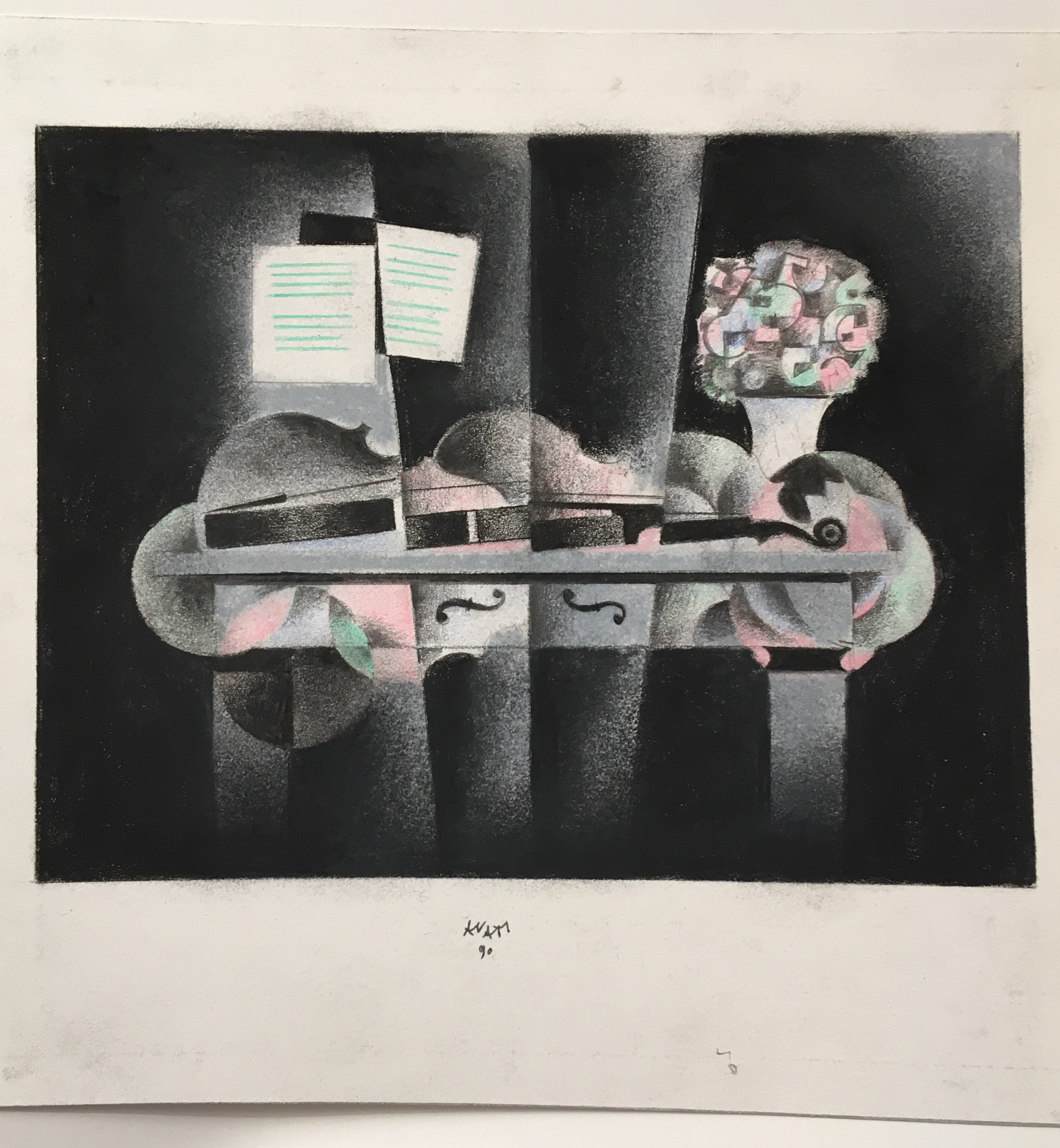Pastel "Beauté pure"/ Violon déstructuré, bouquet de fleurs.