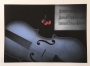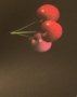 Violon et 3 cerises. Gravure à la manière noire en couleurs.