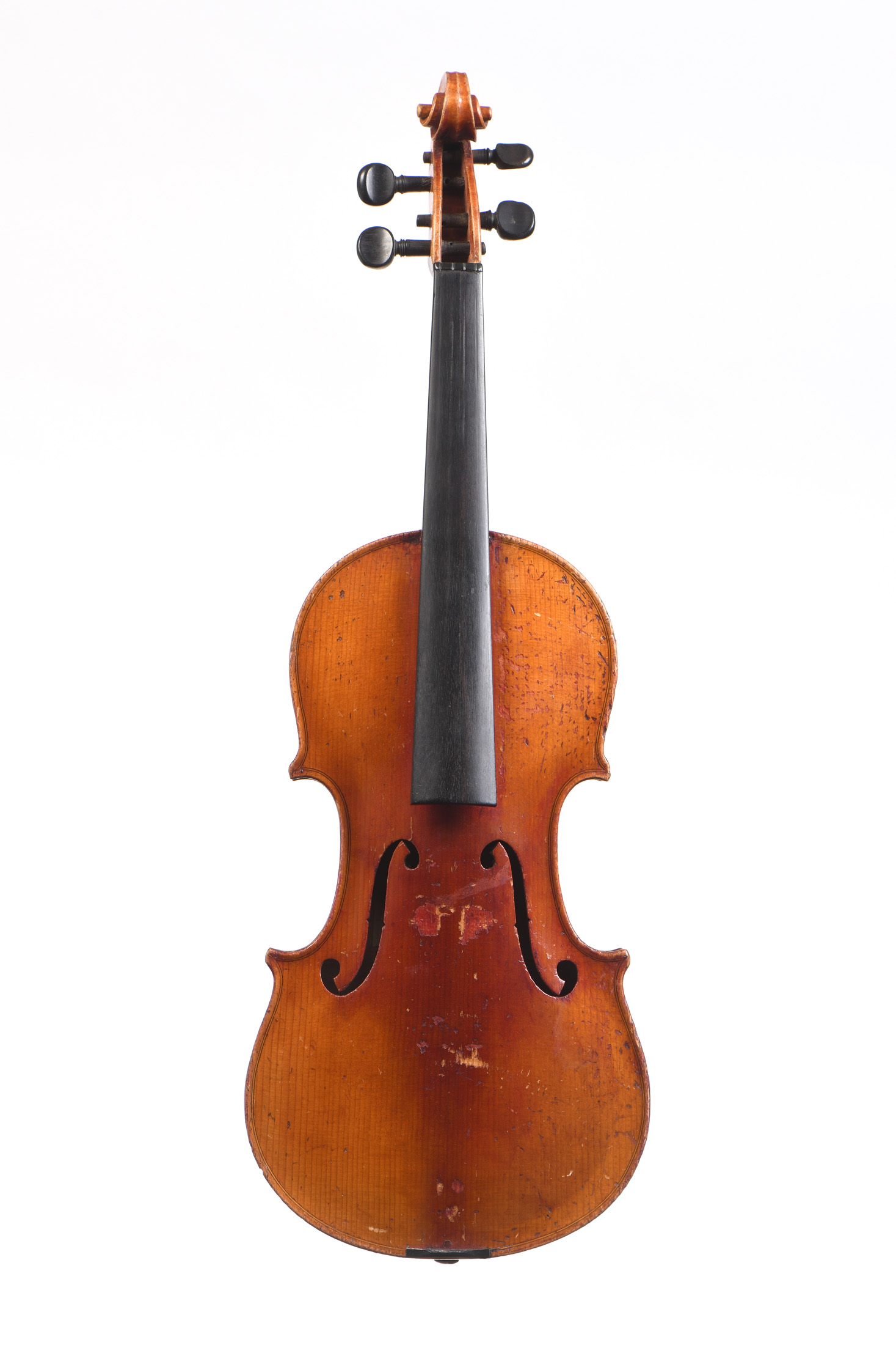portant une étiquette Stradivarius 1736. Fond de deux pièces. Vernis brun orangé sur fond doré. 357 mm. Bon état général. Usures.