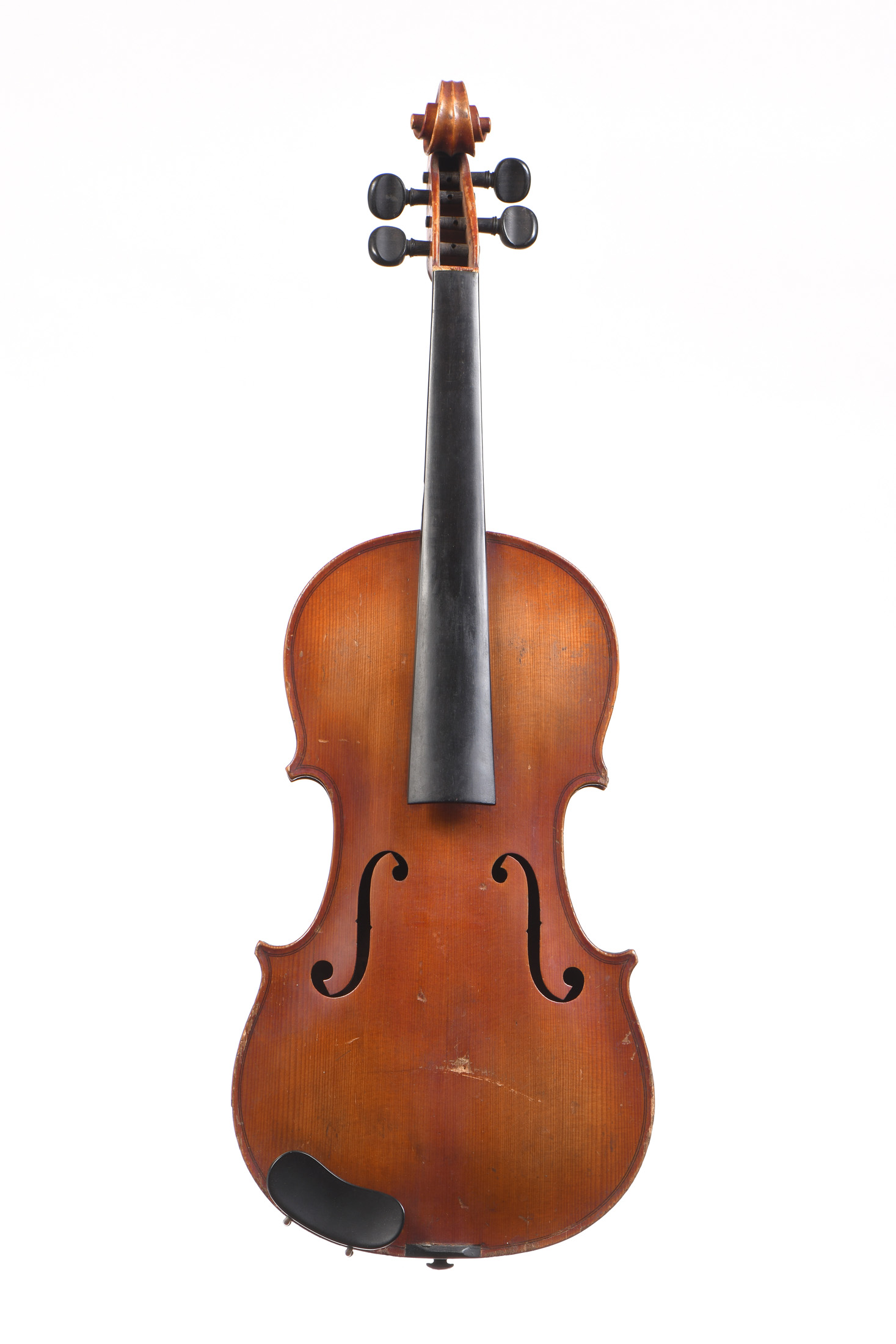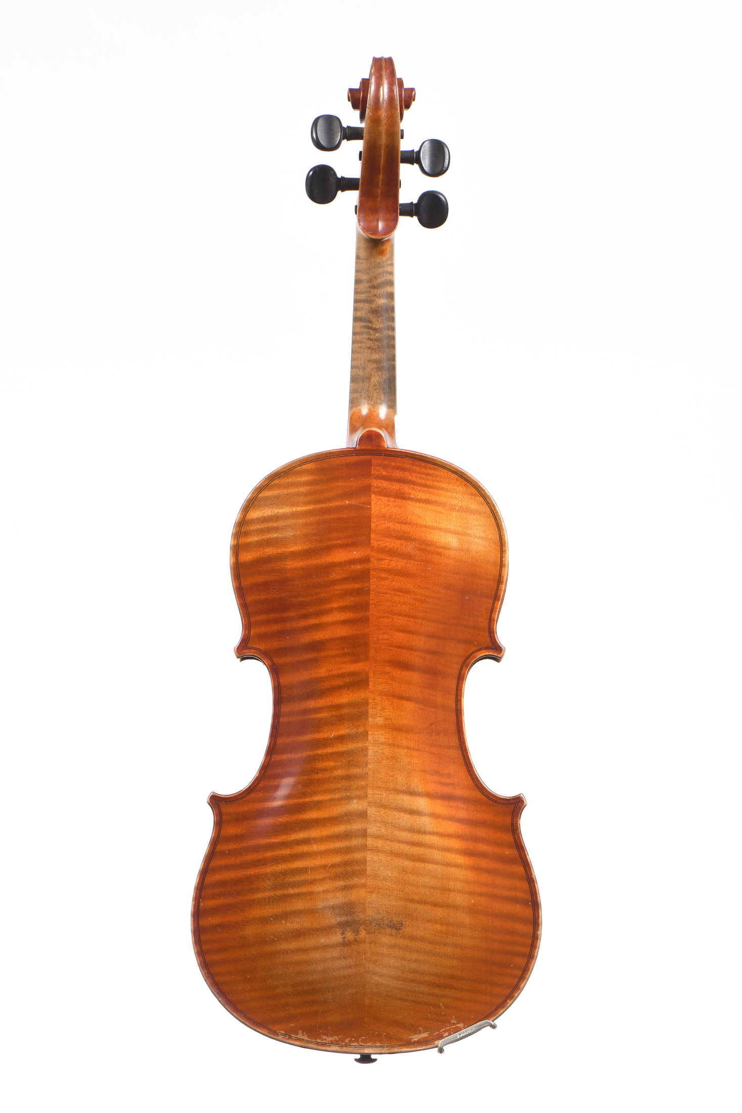 fait dans les ateliers JTL, à Mirecourt. Portant une étiquette "Stainer 1662". Vernis orangé sur fond doré. Fond de deux pièces. Usures et décollages. 358 mm.