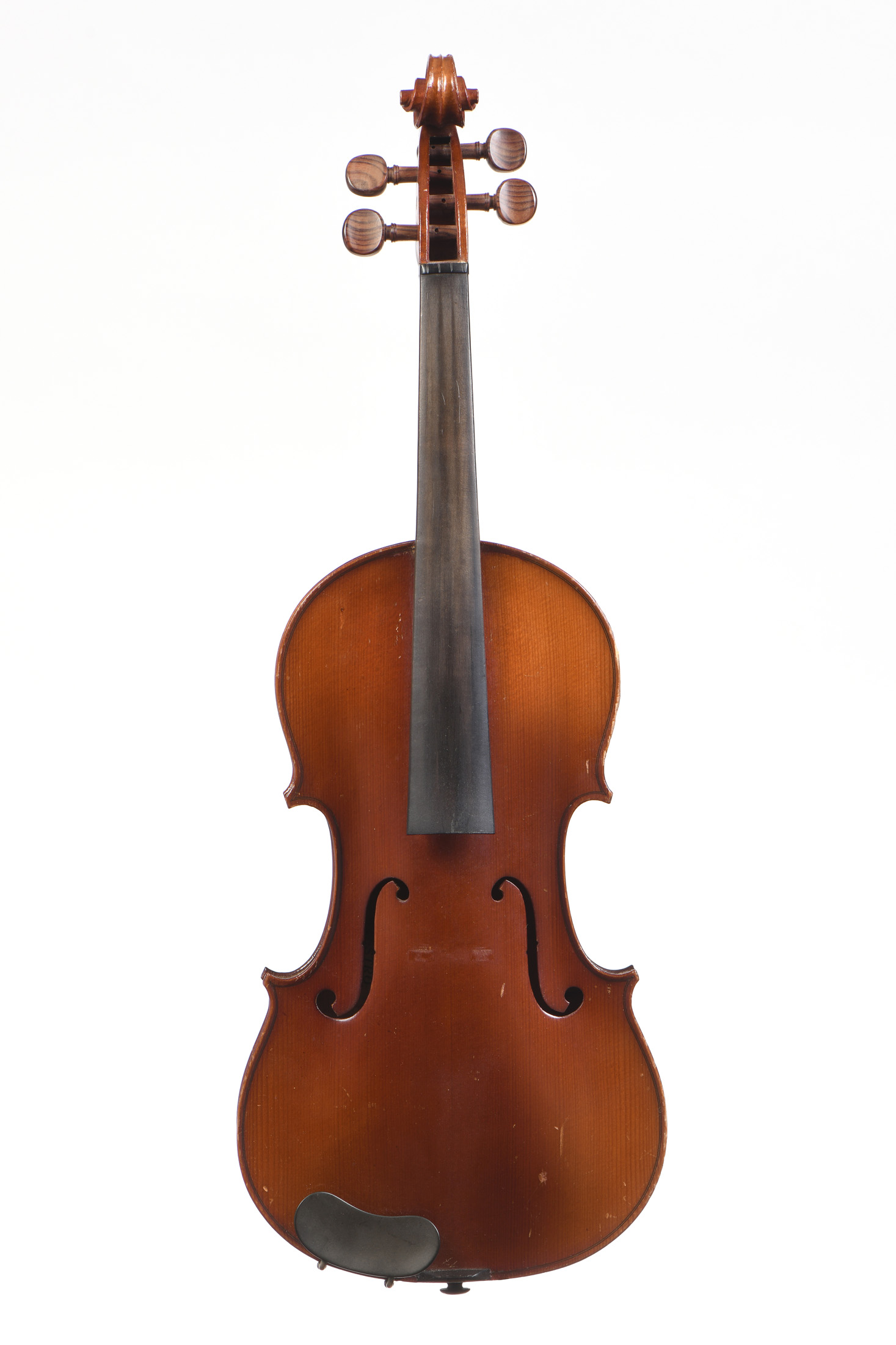 portant deux étiquettes: "Le maestro" "Paul Beuscher...". Violon d'étude. Vernis brun sur fond doré. Fond de deux pièces. Bon état général: petites usures. 358 mm.