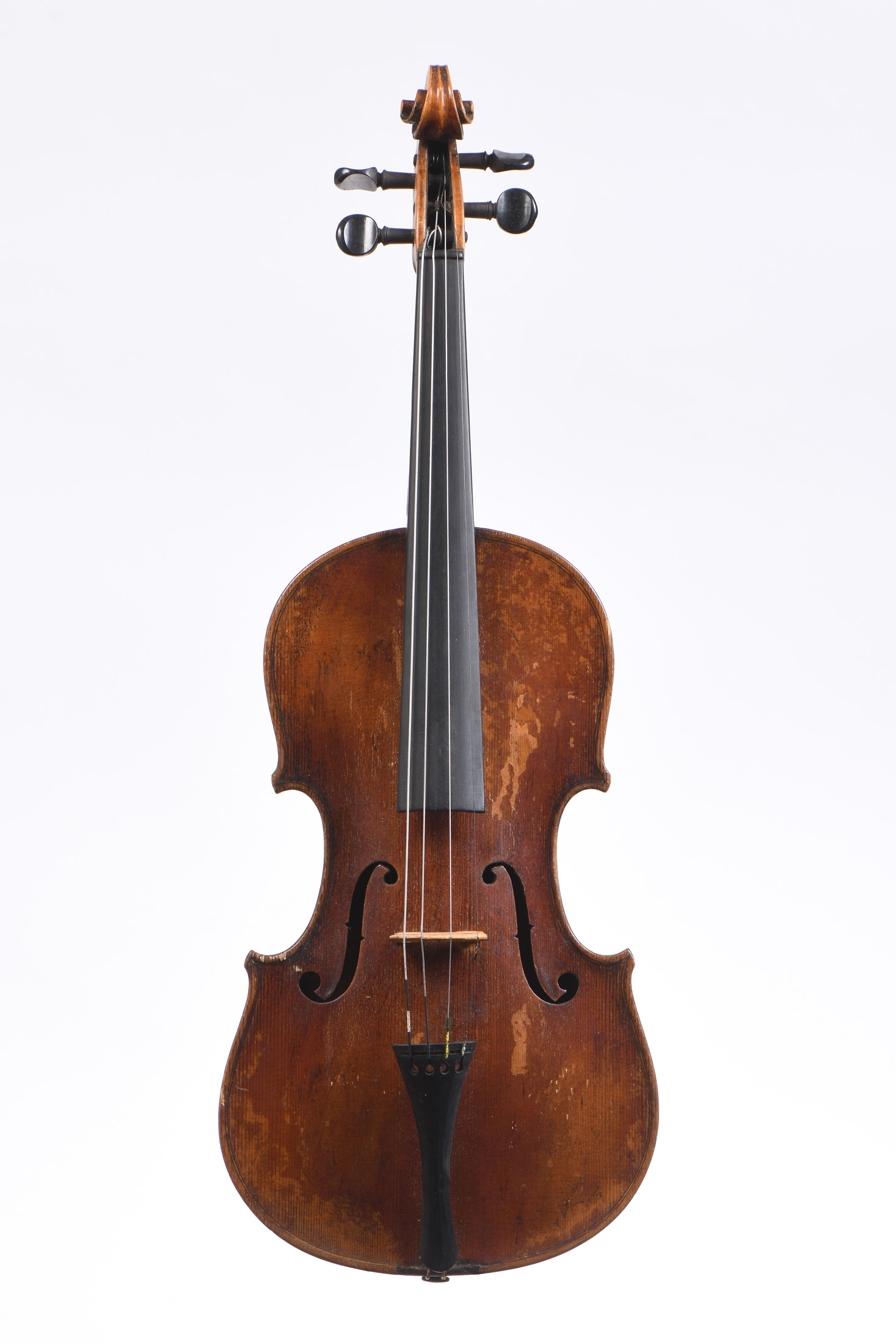 Fond d'une pièce. Vernis brun doré. 359 mm. Avec Boite et archet. Fait vers 1920. Usures au vernis.