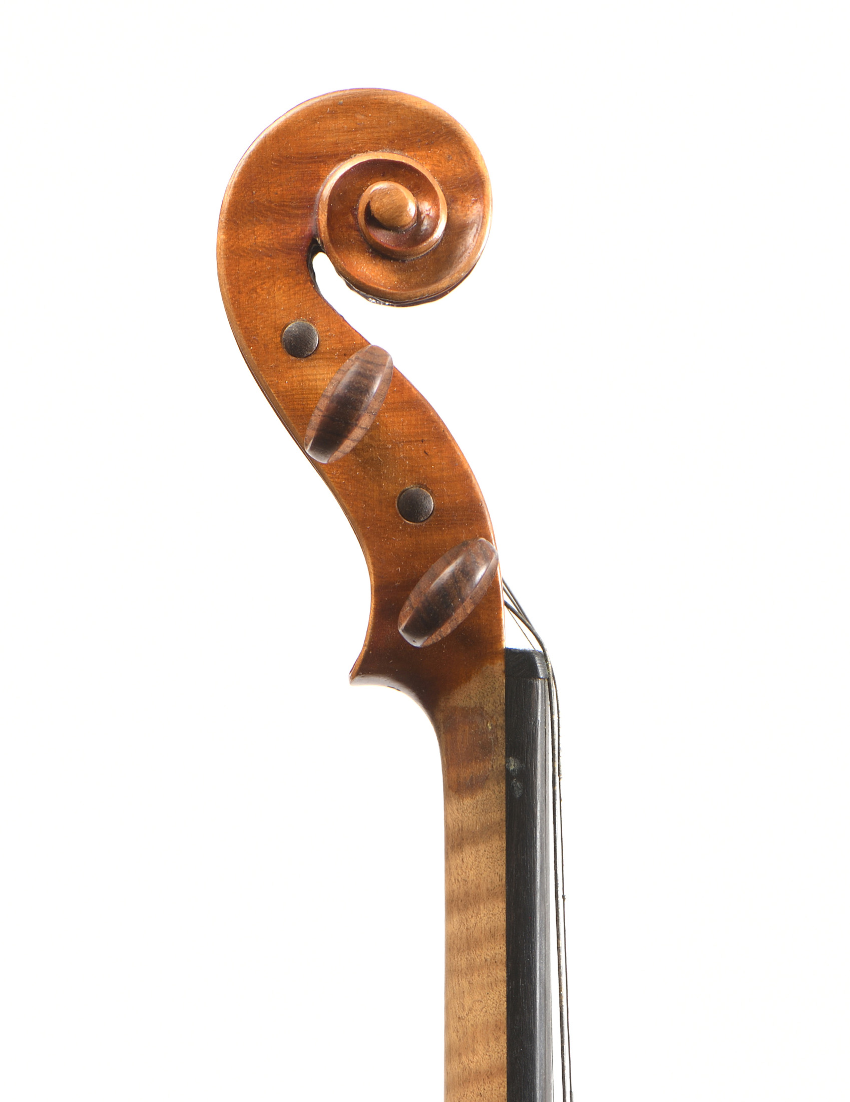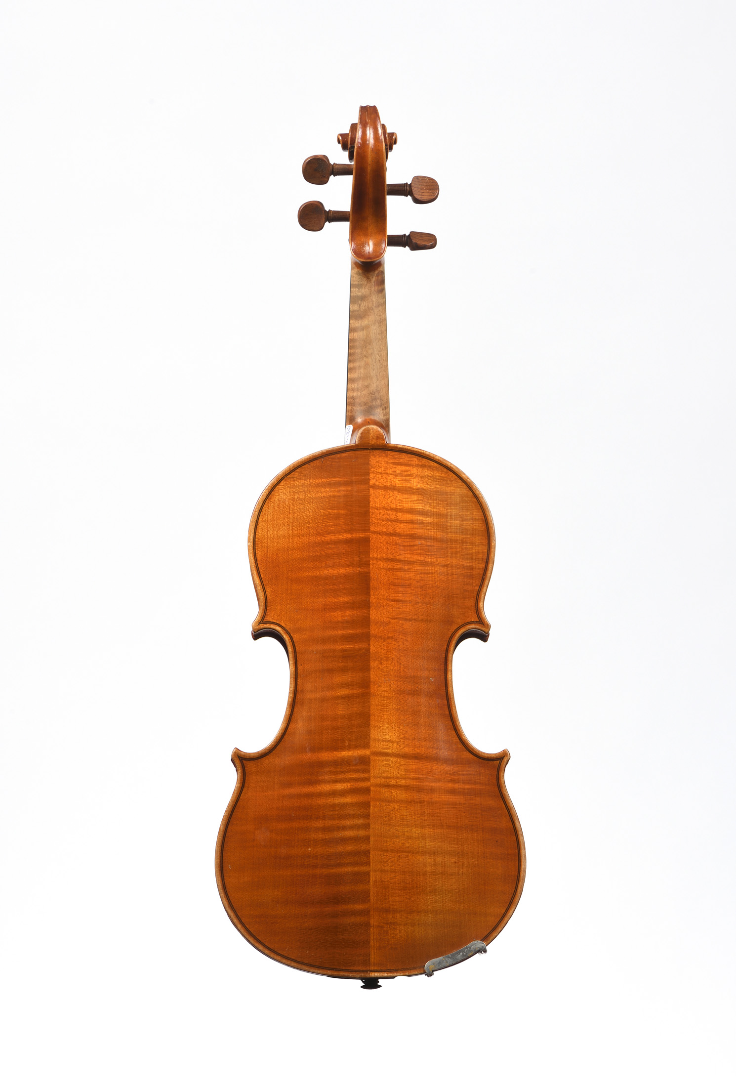 Fond de deux pièces en érable. Vernis brun orangé sur fond doré. 357 mm.