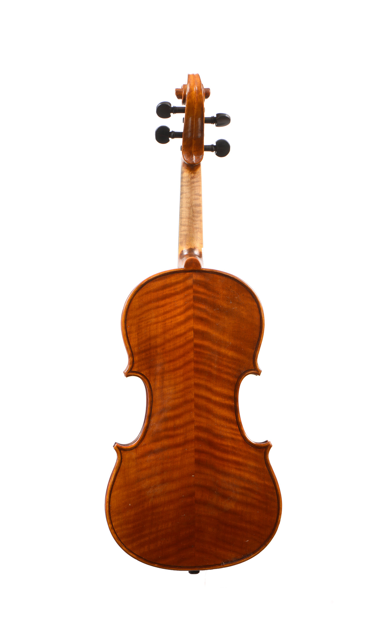 portant une étiquette de CARAVAGIO Roma Italia. 1954. Fond de deux pièces en érable, aux belles ondes descendantes. 357 mm.