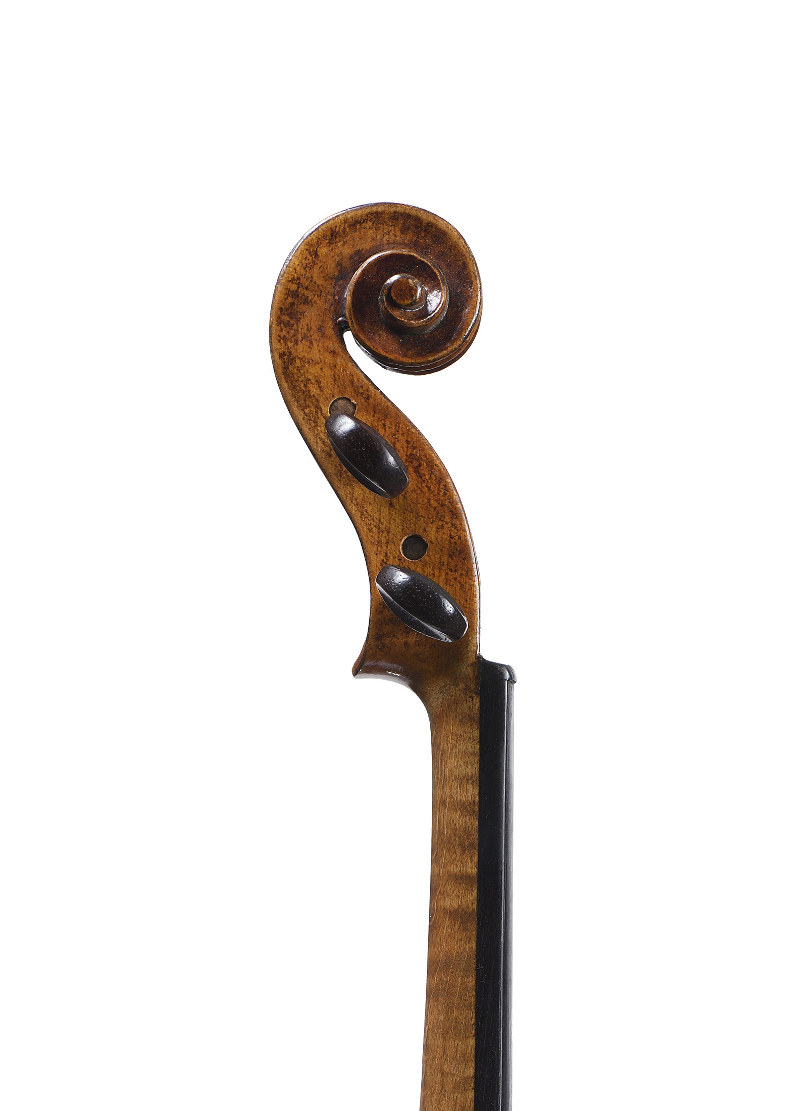 portant une étiquette "d'après A.Stradivarius. Année 1932.". Fond de deux pièces en érable. Table en épicéa. Vernis brun doré. Avec boite et archet. 360 mm. Bon état général.