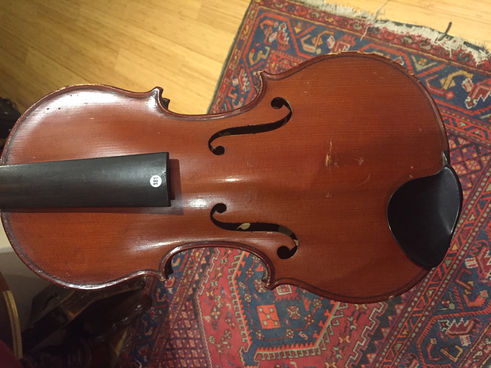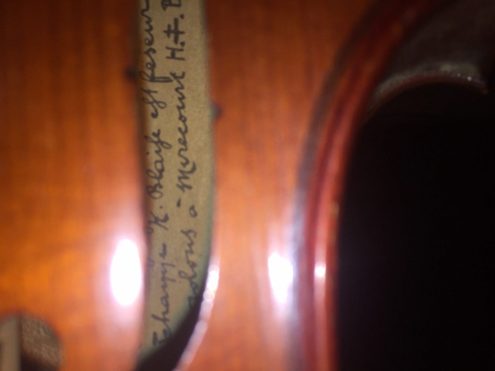 portant une étiquette manuscrite: "A l'enseigne de la bonne Lorraine Shemme H . Blaise? Faiseur de violons à Mirecourt"