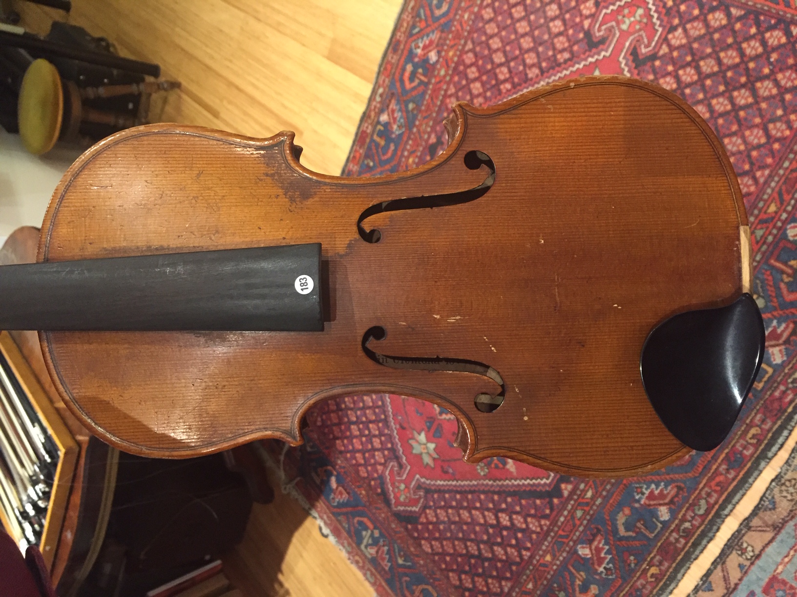 portant une étiquette Nicolaus Amatus 1656. Vernis brun sur fond doré. Fond d'une pièce. Bon état général. Sillet du bas à changer.