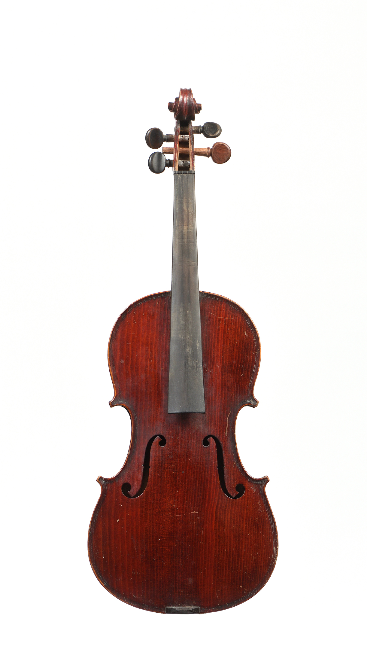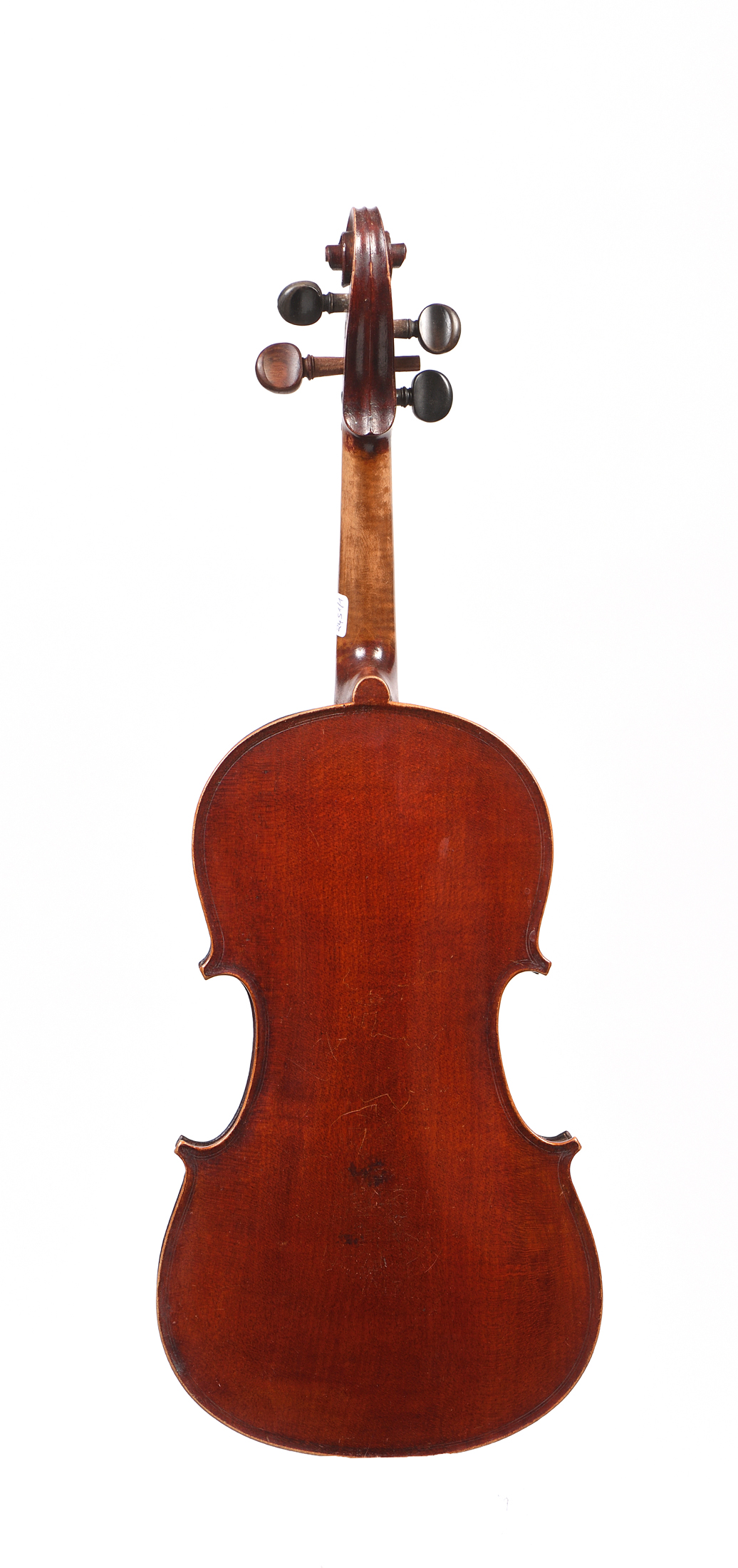 Fait à Mirecourt, portant une étiquette MEDIO FINO. Fond d'une pièce. Vernis brun rouge. avec boite et un archet.