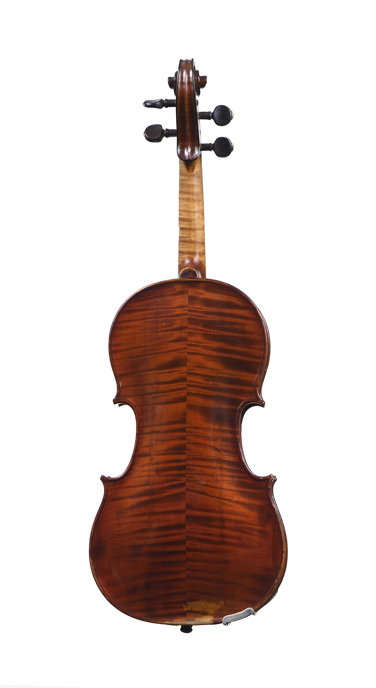 Fait à Mirecourt, portant l'étiquette H.CLOTELLE. Fond de deux pièces en érable. Vernis brun rouge sur fond doré. 359 mm.