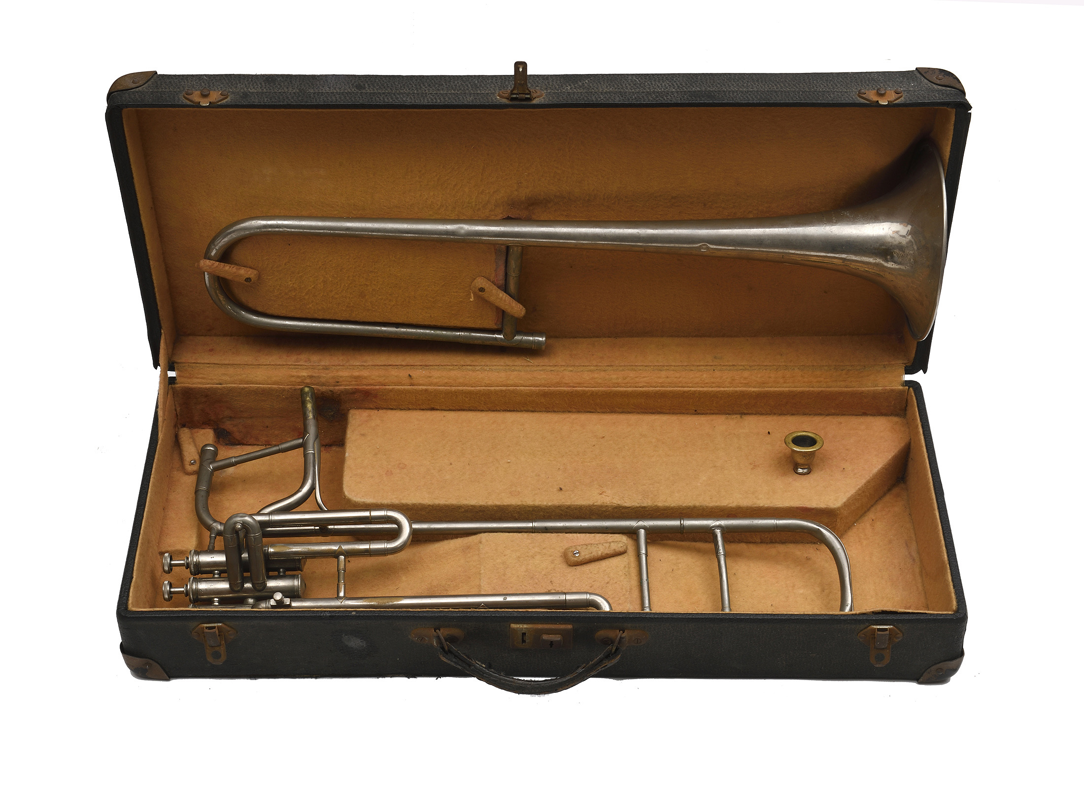 métal argenté. Bossué, rayé. L'ensemble est à revoir. Avec boite.