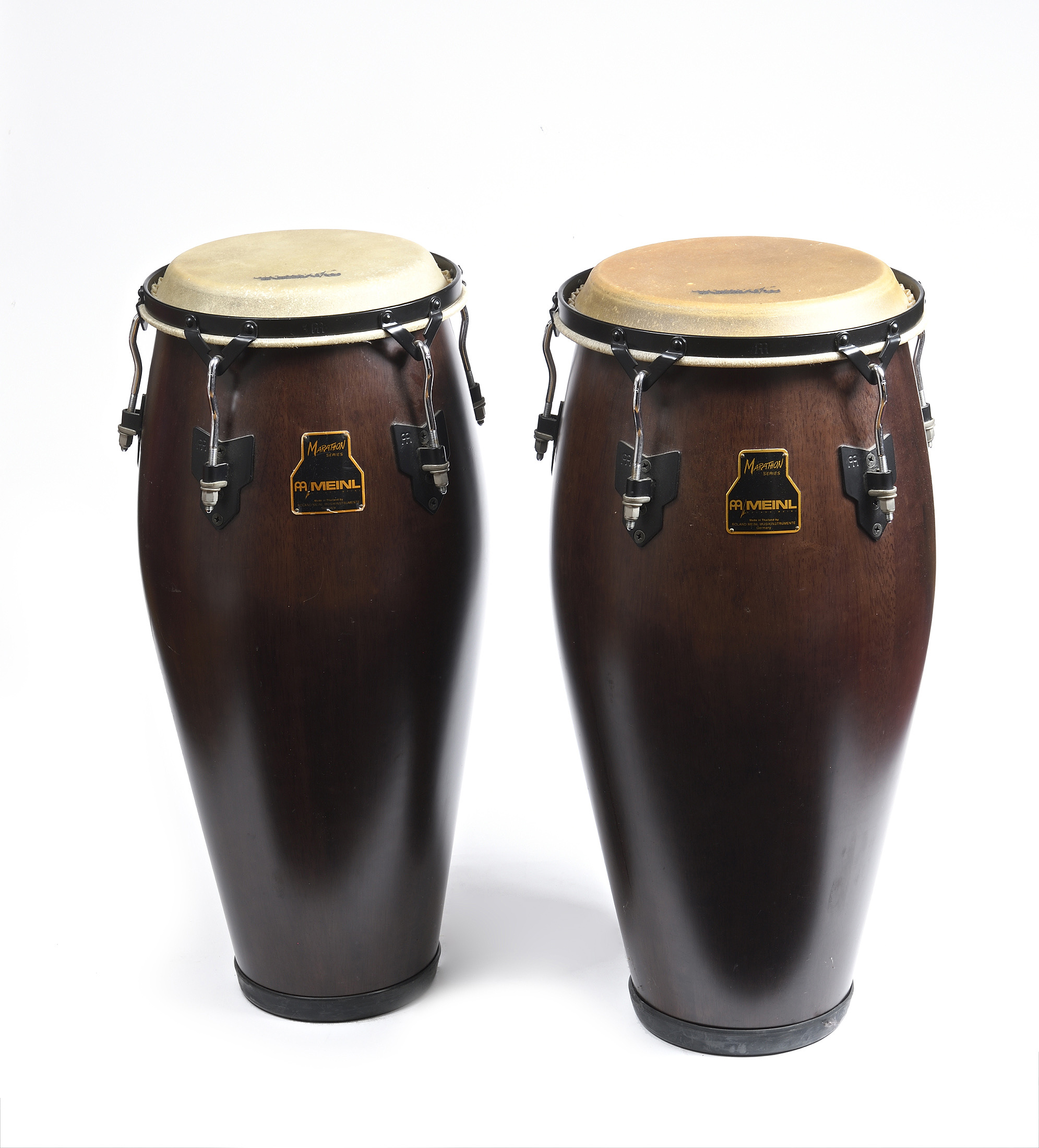 Lot de deux congas MEINL. Bon état général. Manque un pied du conga Stand.