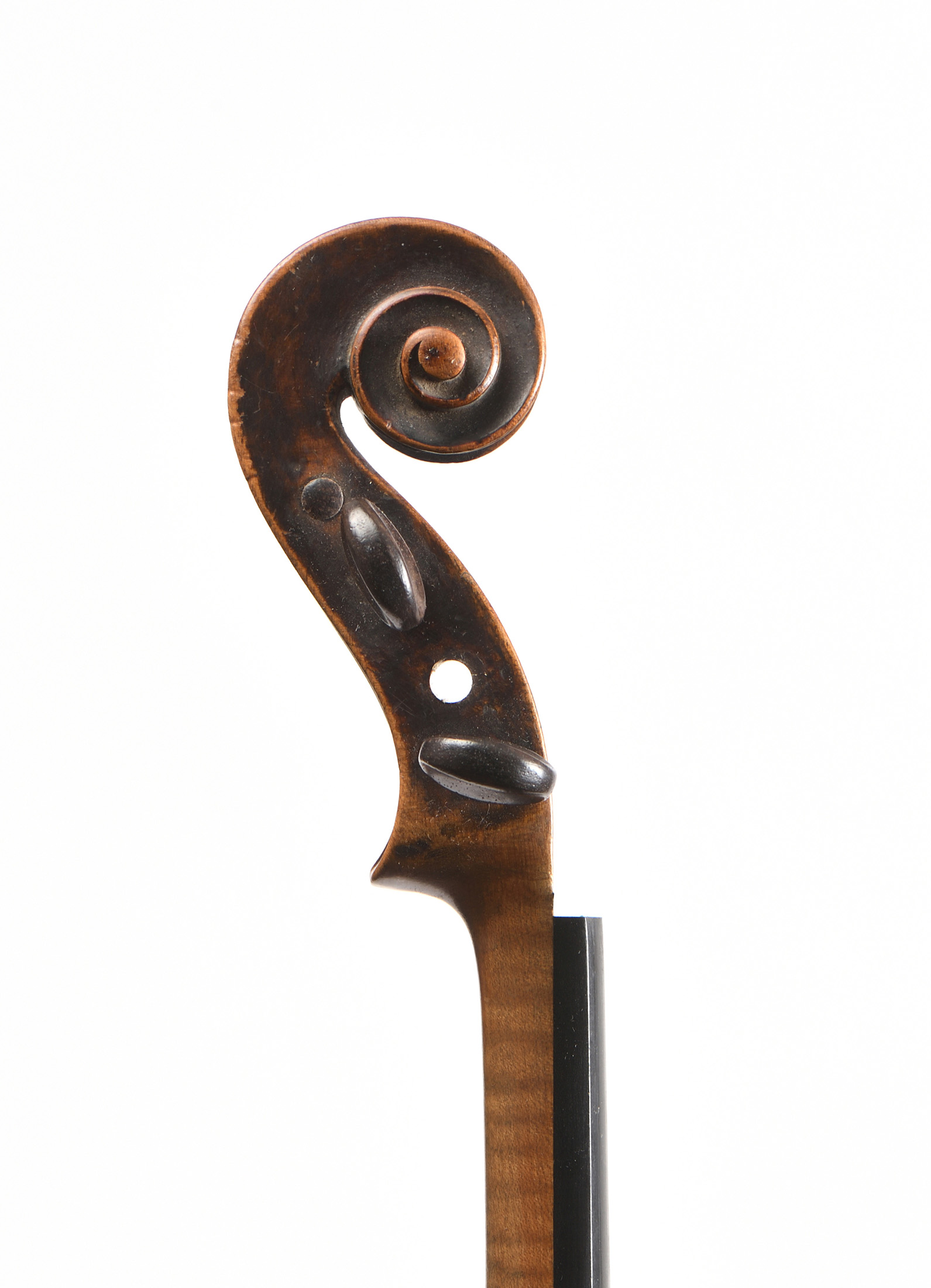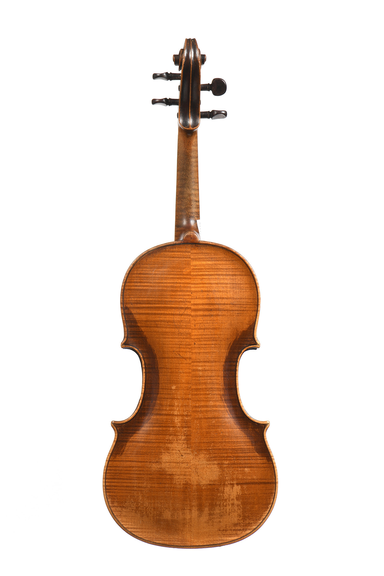 Fond de deux pièces en érable. Vernis brun sur fond doré. Diverses cassures restaurées. Décollages.