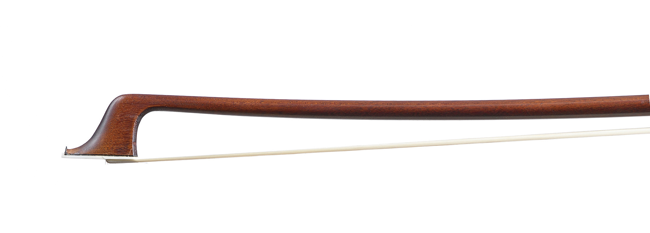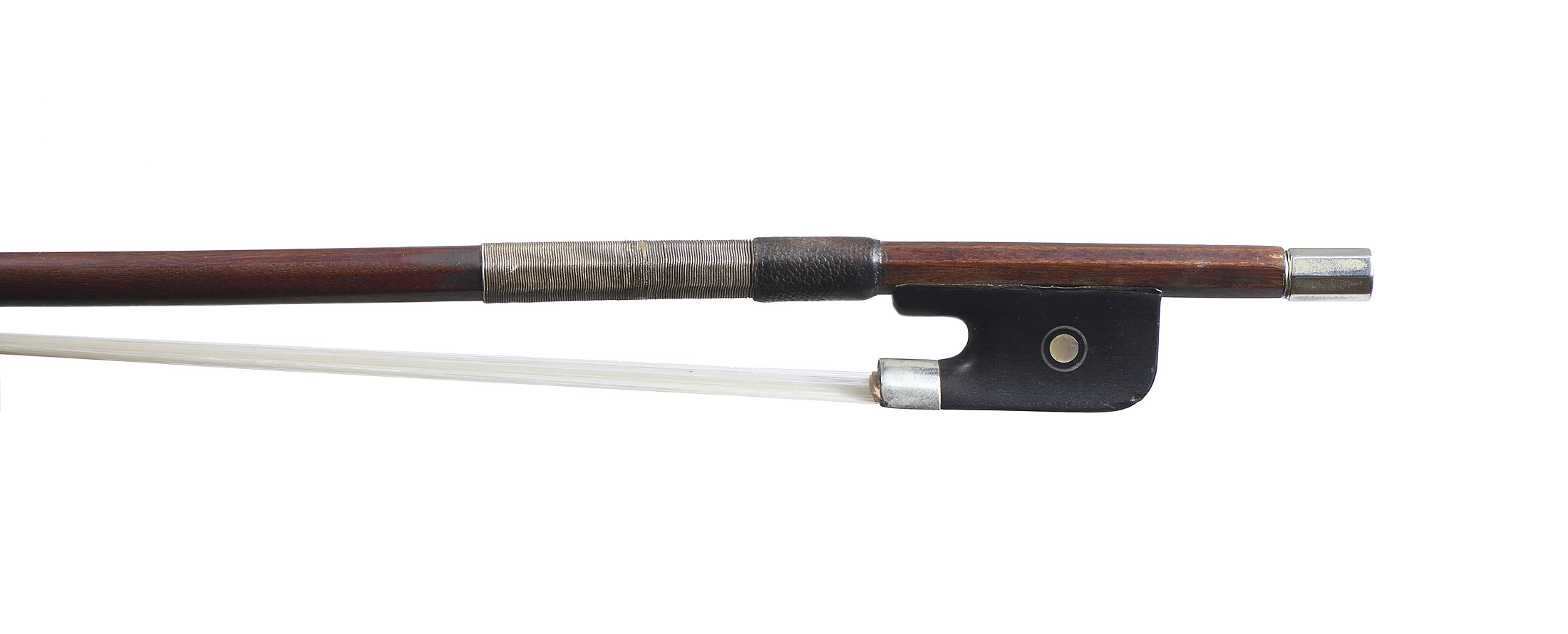 baguette ronde en bois de pernambouc. La hausse est en ébène montée argent avec grain cerclé. Gerce au dessus de la hausse. Manques à la hausse. 73,4 g. 693 mm.
