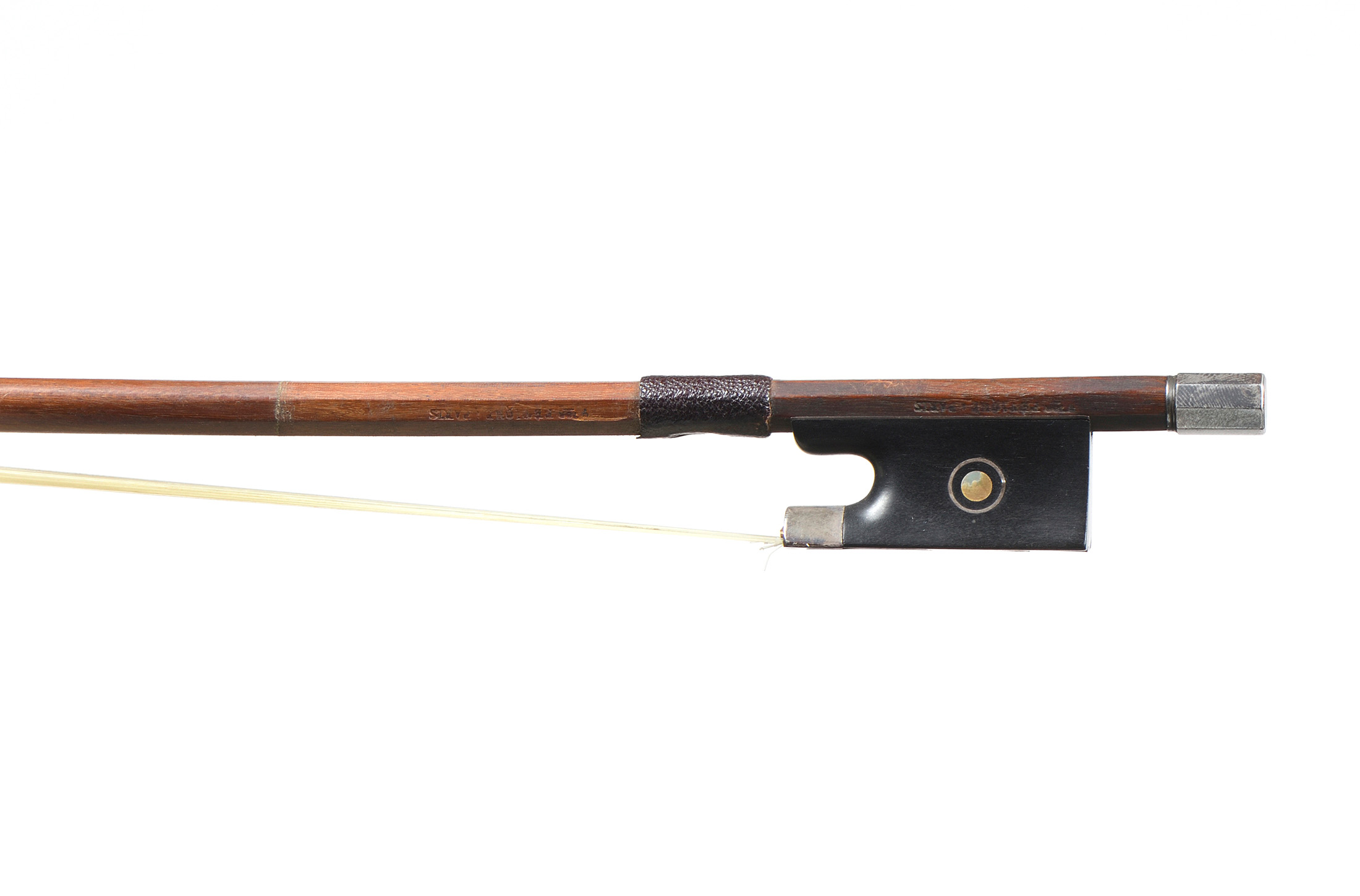 portant les marques "V.tor FETIQUE A PARIS". Baguette ronde en bois de pernambouc. Hausse ébène montée argent. Oeil Parisien (Grain cerclé). 56 g sans garniture. 732 mm.