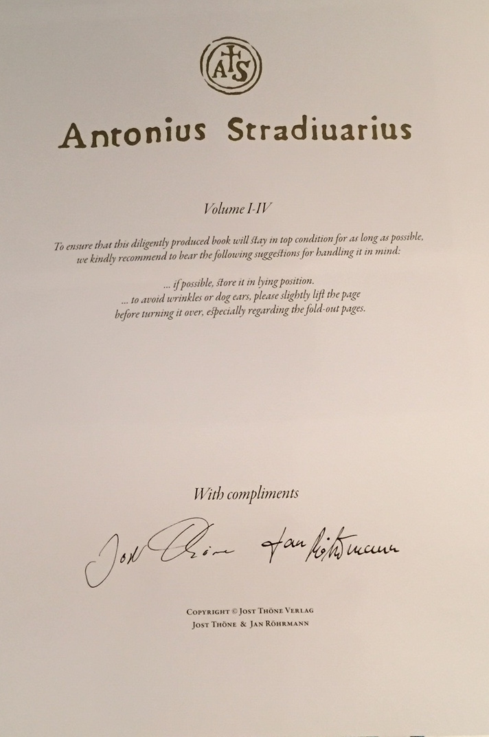 Jost Thöne, Jan Röhrmann Major iconographic study on Stradivari stringed instrumentsA chronological catalog of Stradivari stringed instruments, detailing 148 instruments, each entry with photographs in color and details of construction, condition, and ownership. Accompanying electronic resource provides measurements and additional visual aspects. Limited edition of 2000 copies. Black buckram with gold titling.