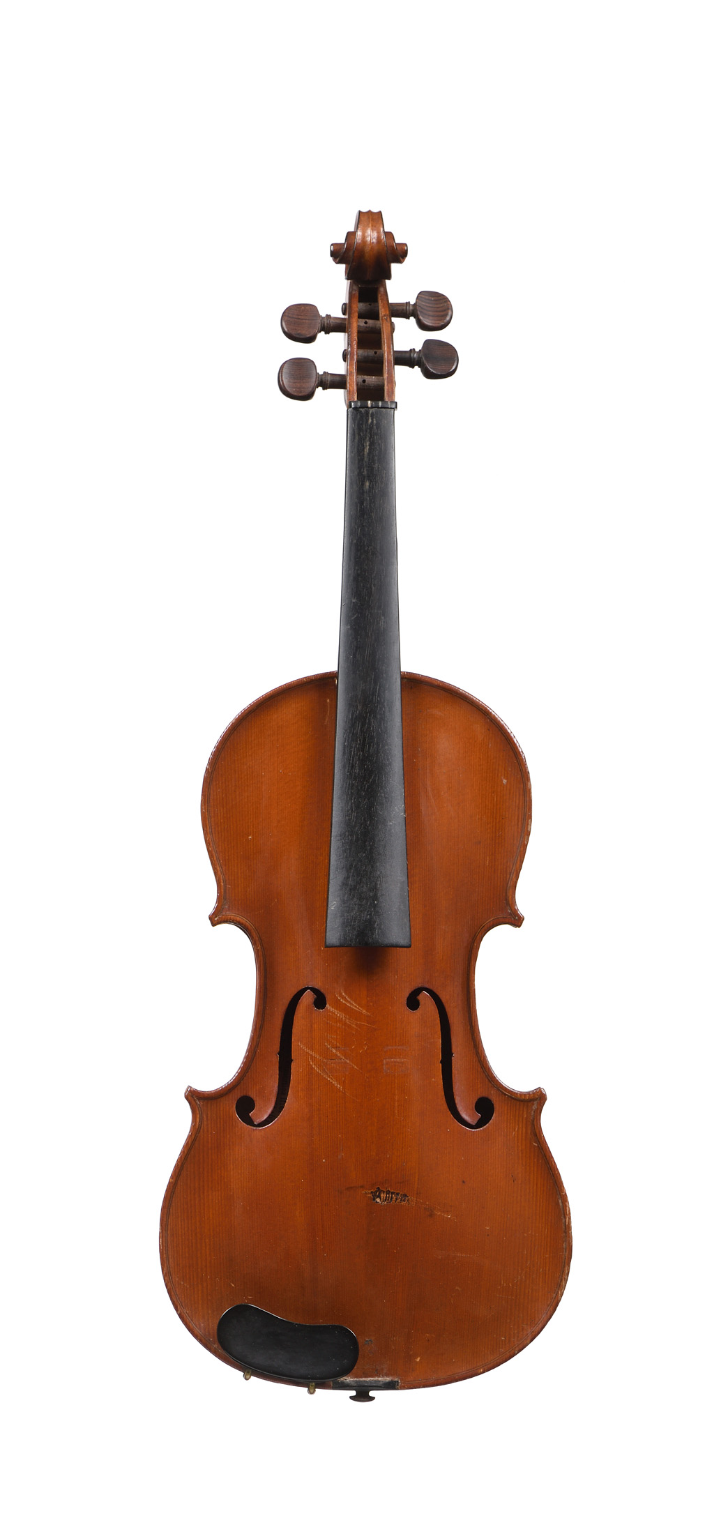 portant une étiquette "copie de Nicolaus Amatus". Fond de deux pièces en érable. Vernis brun orangé sur fond doré. 357 mm.