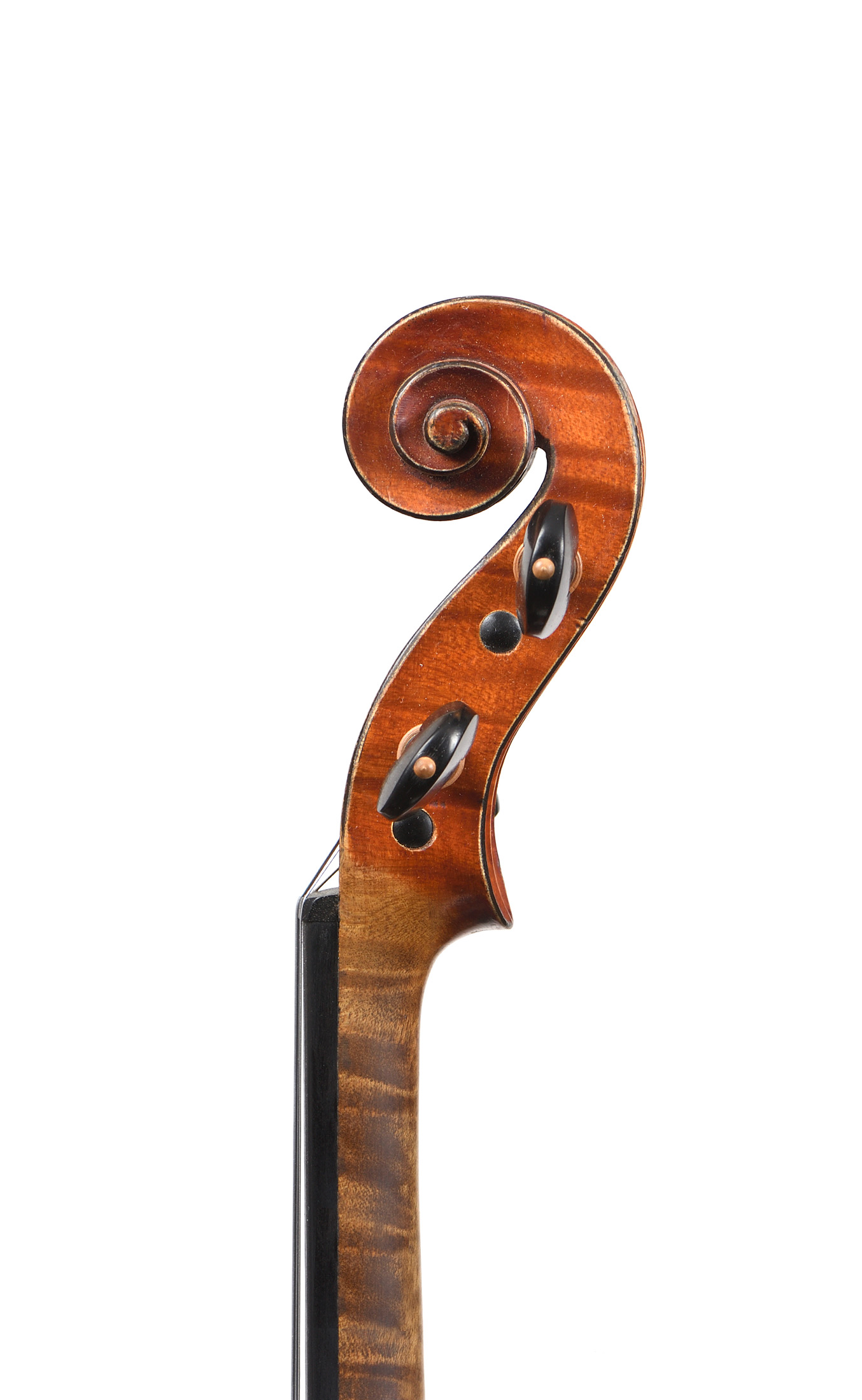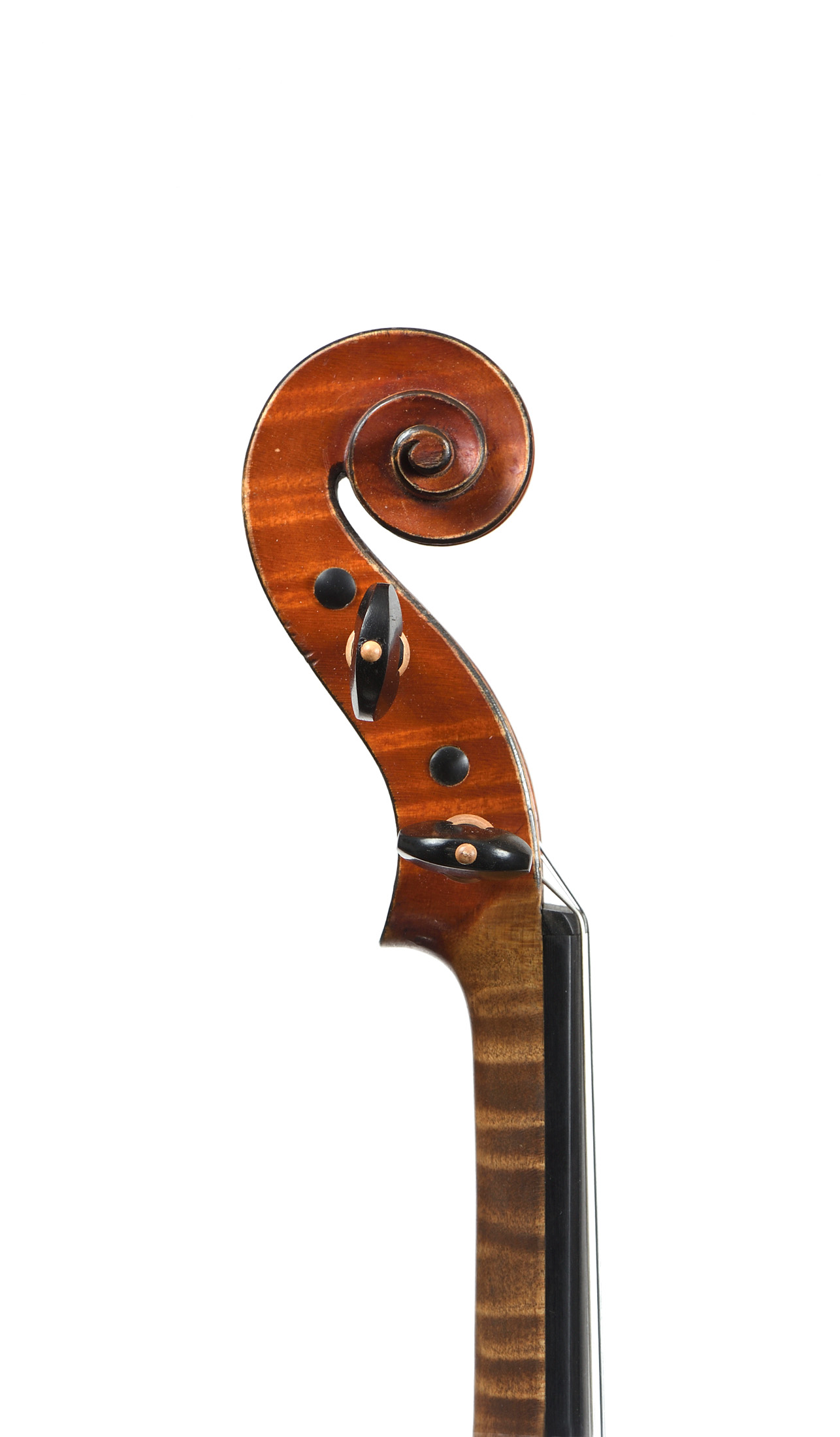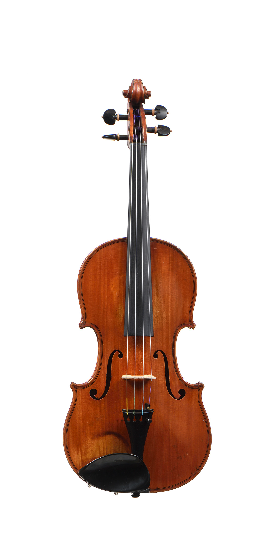 Exceptionnel violon fait par Nestor AUDINOT dont il porte l'étiquette originale "Nestor AUDINOT 17 Boulevard Bonne Nouvelle à PARIS. Année 1897. N°672.", et sa signature. Fond de deux pièces en très bel érable. Vernis brun orangé sur fond doré. 357 mm. Parfait état.