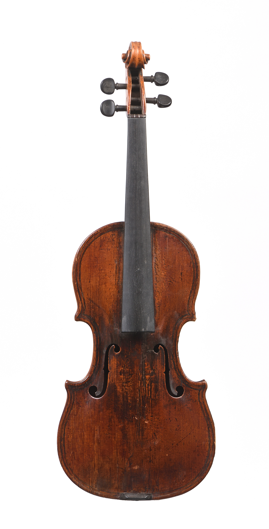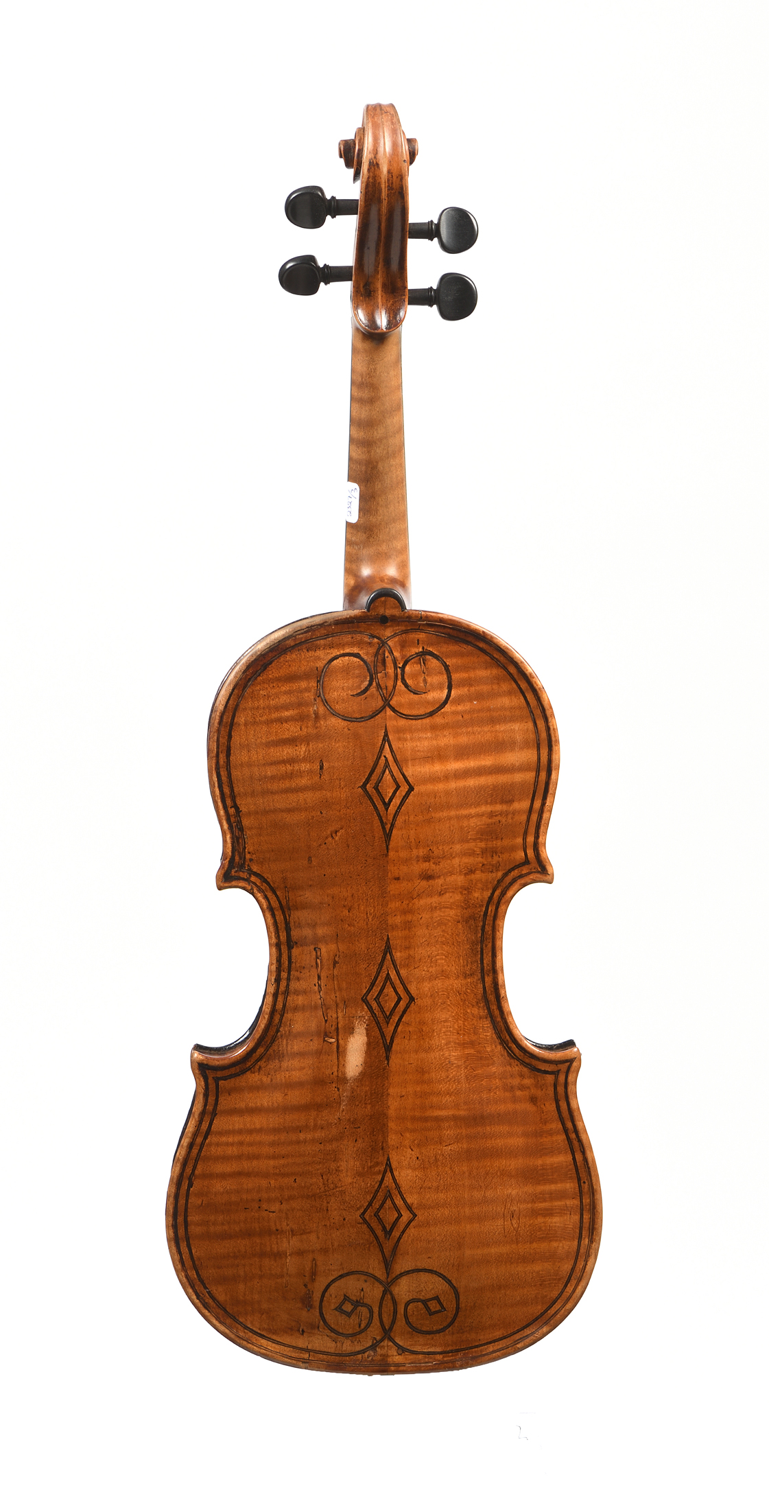 Intéressant violon portant une étiquette en partie déchirée: "GIOVAN PAOLO MAGINI...16?". Fond de deux pièces incrusté. Double filet Magini. Traces de vers. 354 mm.
