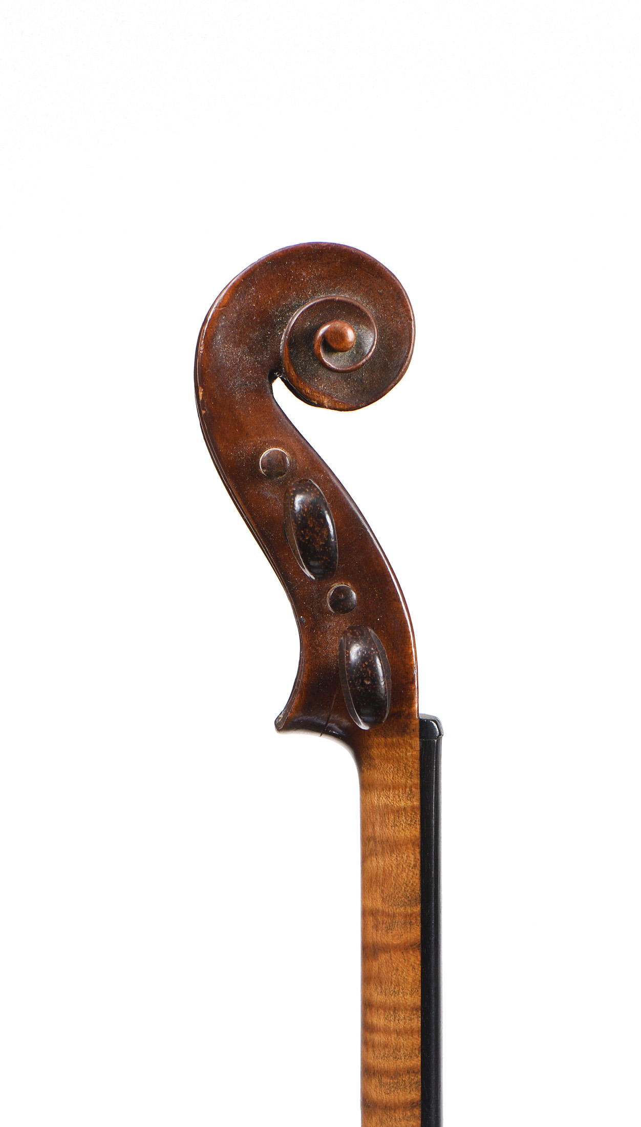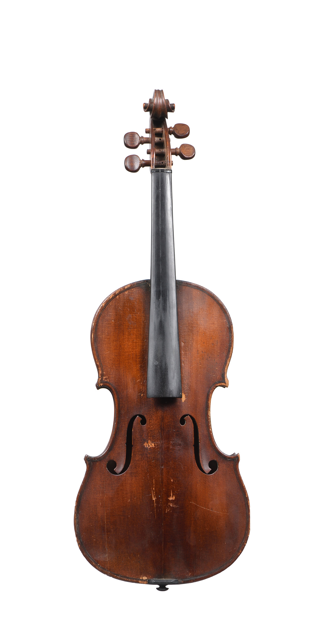Intéressant violon portant une étiquette "Gasparo di salo fecit Brecia anno 16...". La barre d'harmonie est signée par C.BOVIS à NICE. Fond d'une pièce. Vernis brun sur fond doré. 362 mm. Diverses cassure et usures.