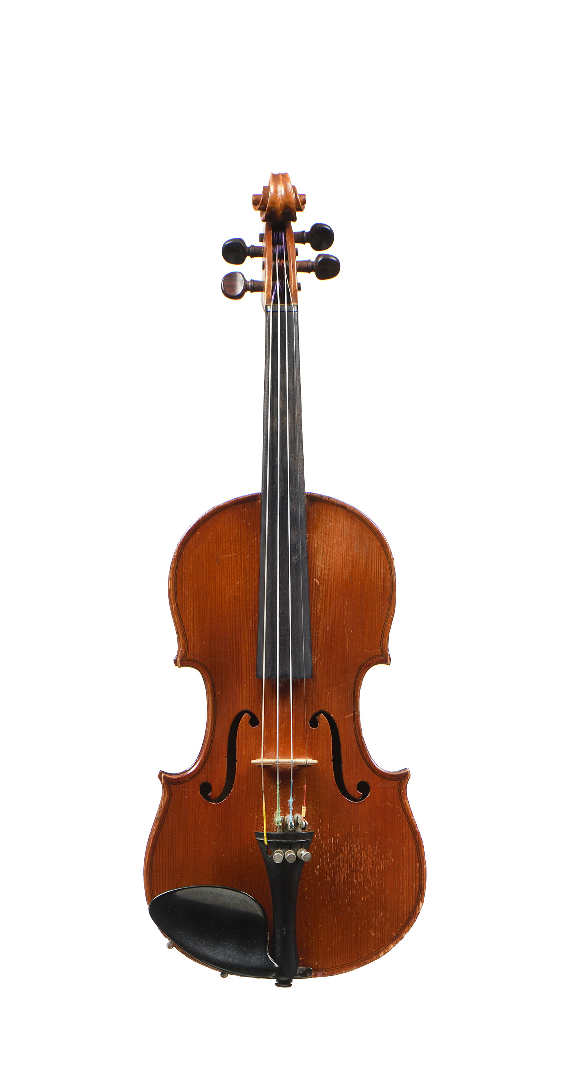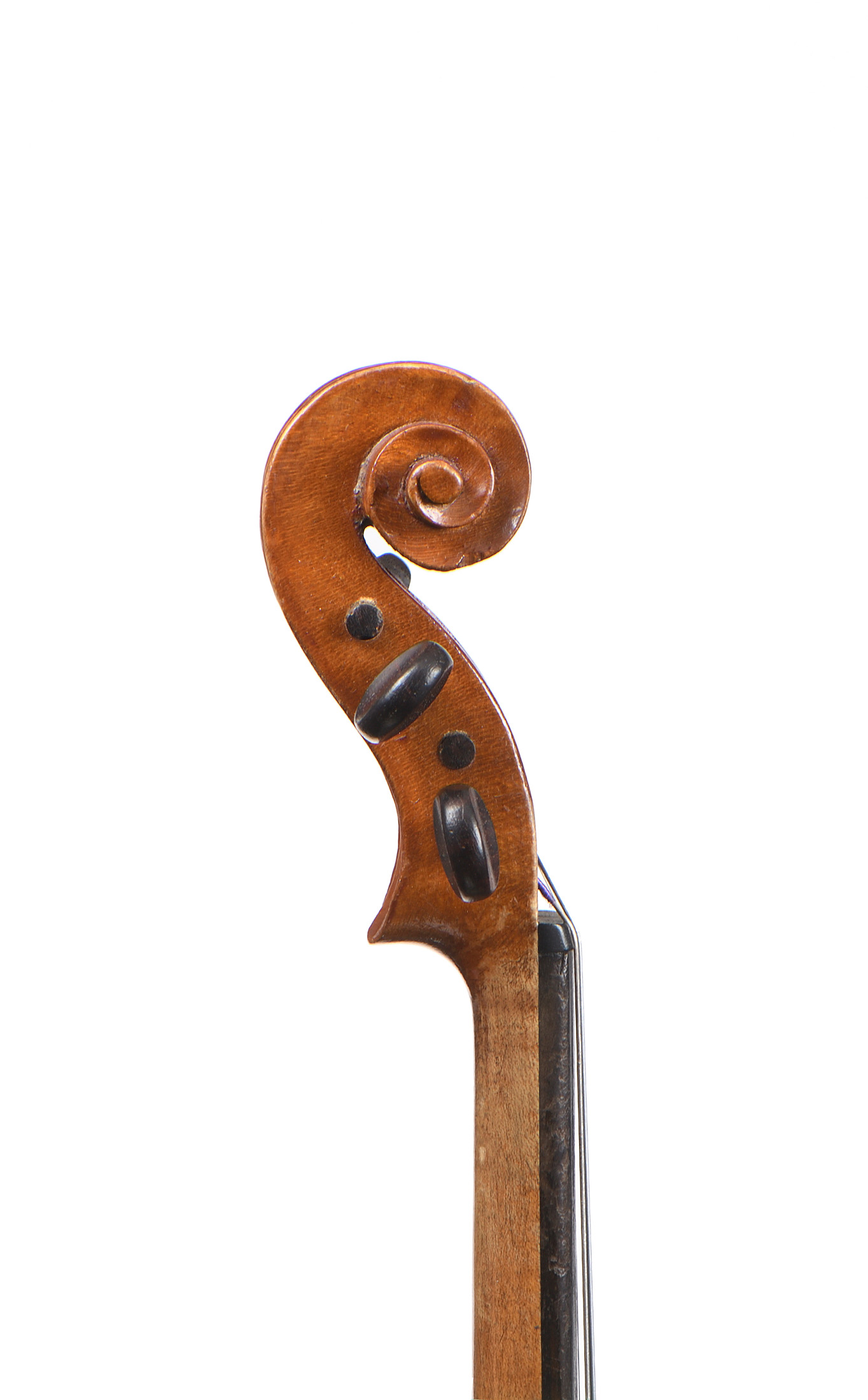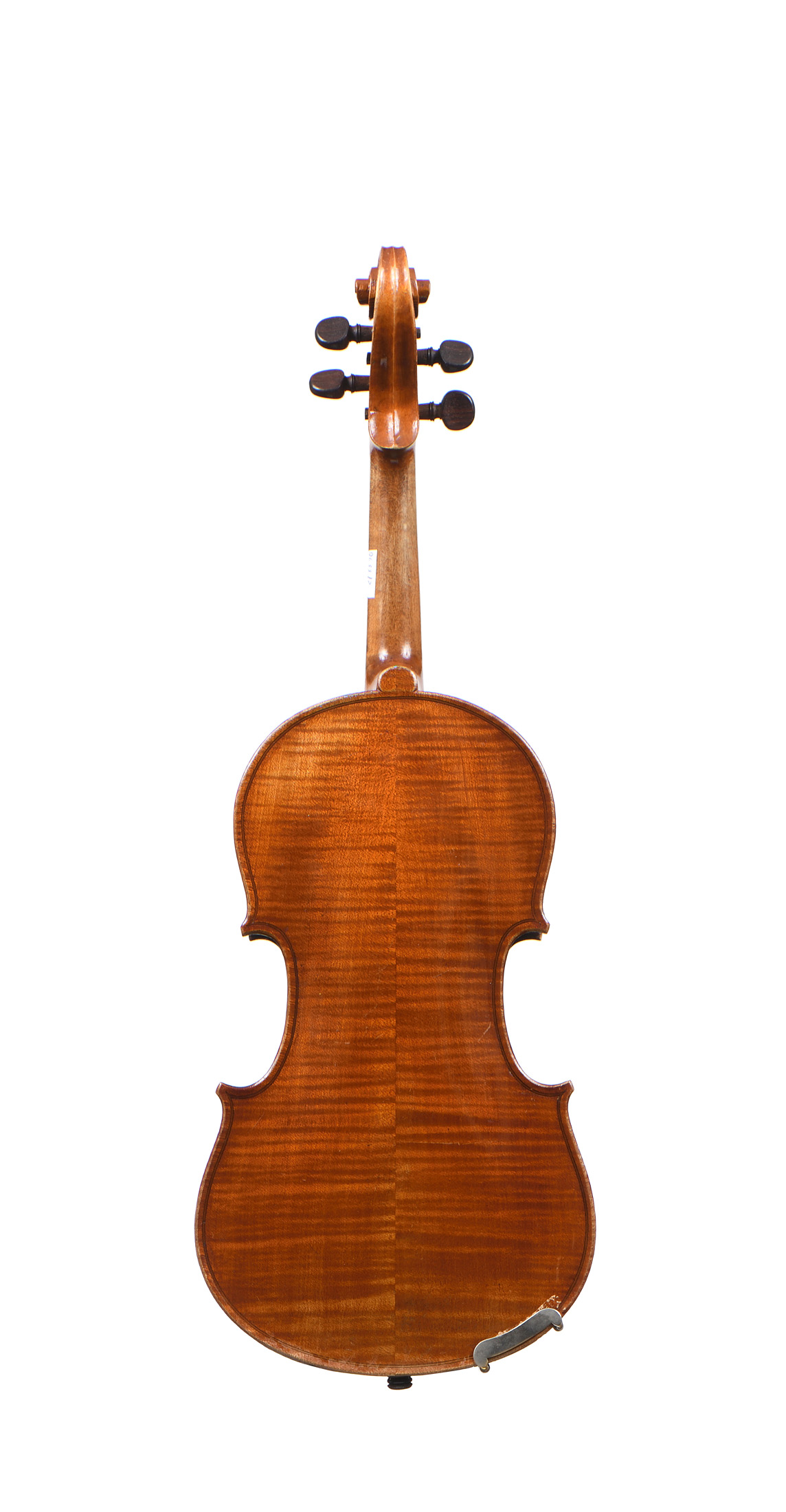 Fait à Mirecourt, portant une étiquette Compagnon. Fait au début du XXe siècle. Fond de deux pièces. Vernis brun orangé. Avec boite et trois archets.