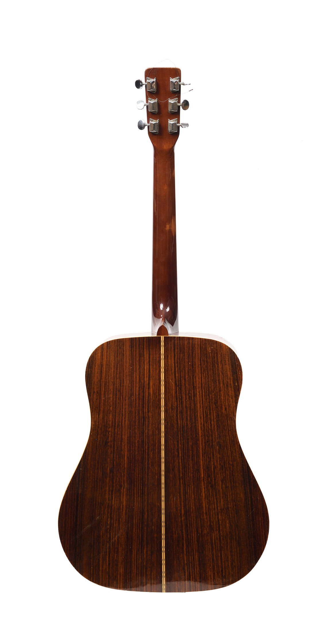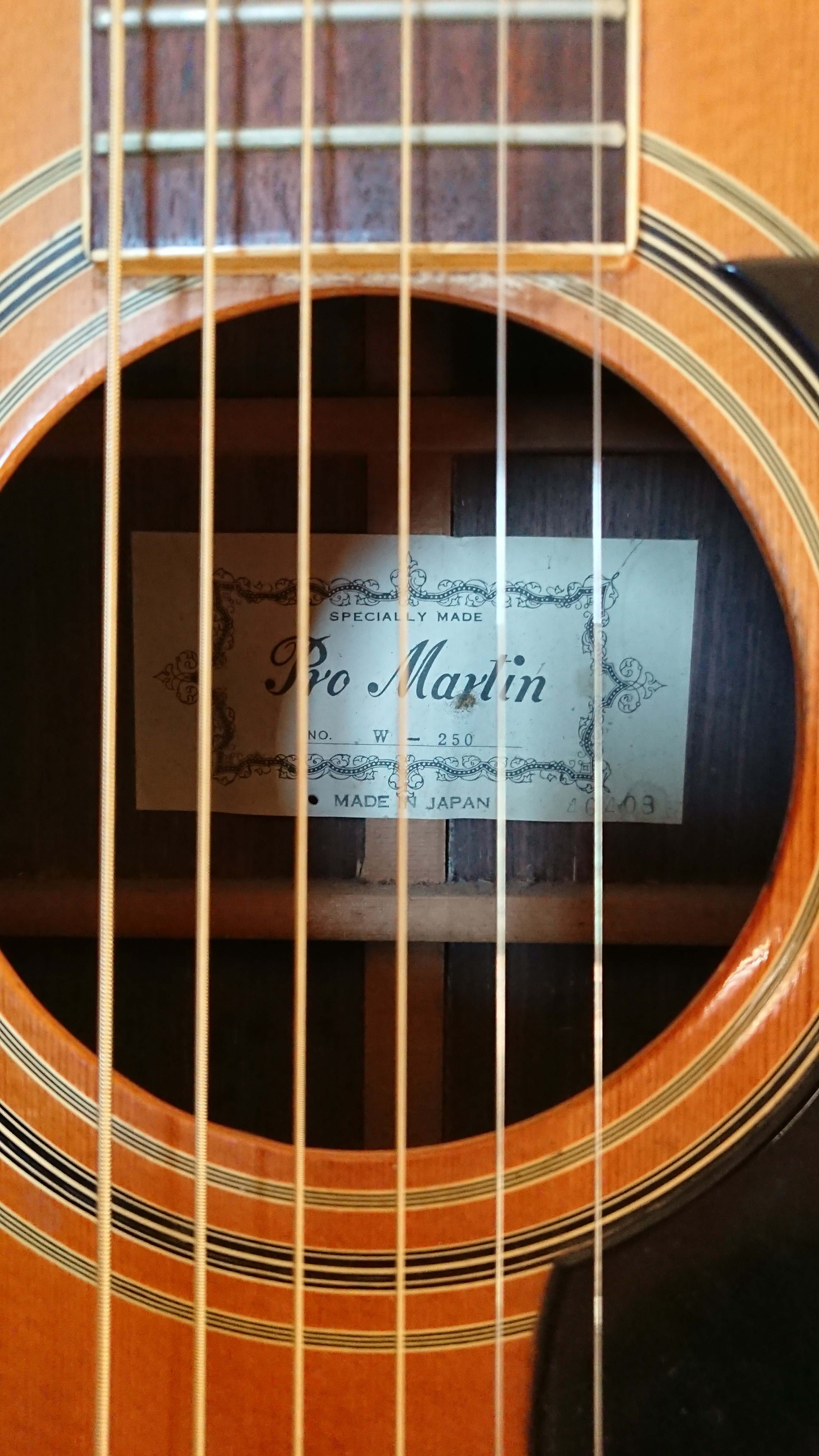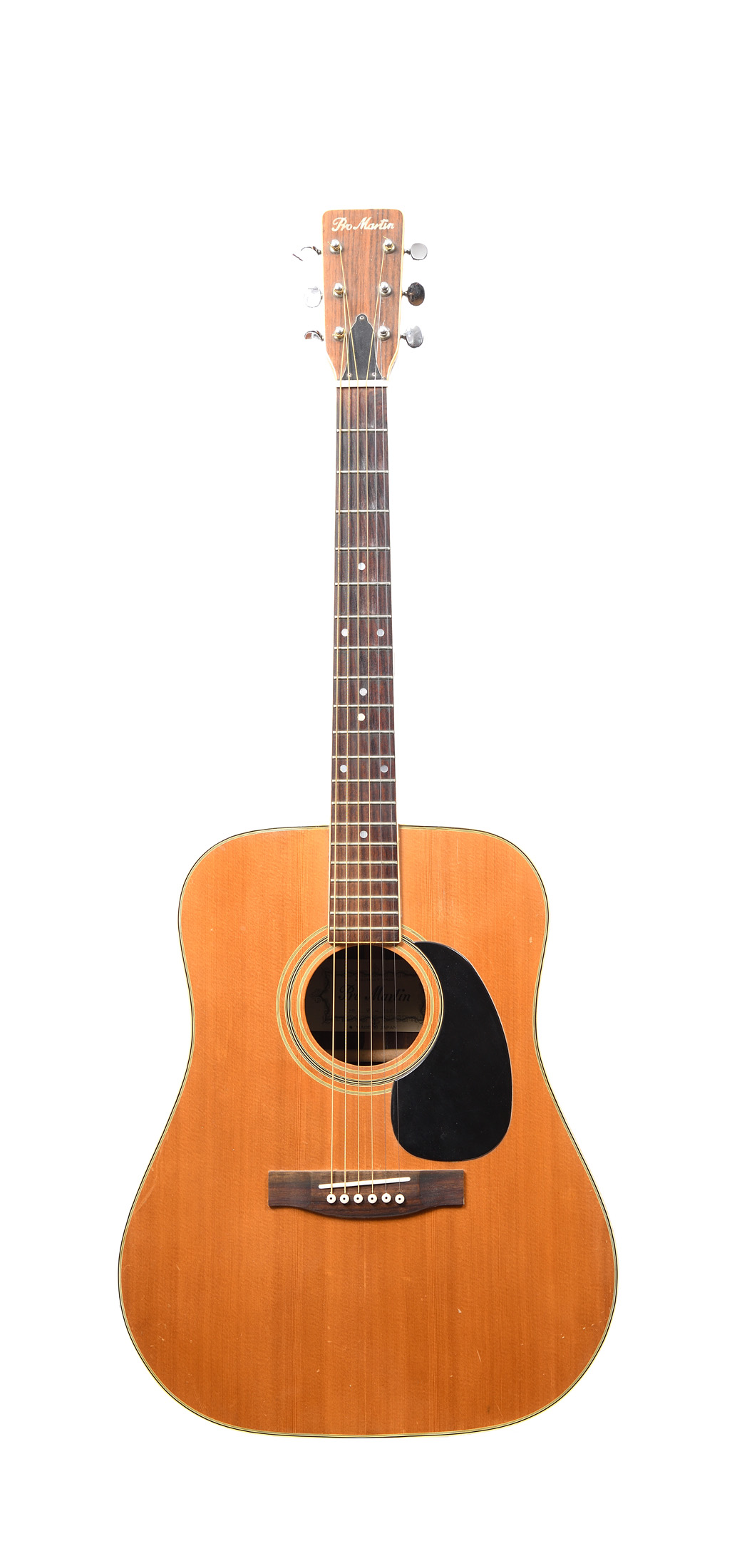 Modèle des années 70. w-250. Portant une étiquette "Specially made Pro Martin. No. W-250. Made in Japan. 40408. Fond de deux pièces en palissandre. Eclisses du même bois. Table en épicéa. L'ensemble en bon état de conservation.