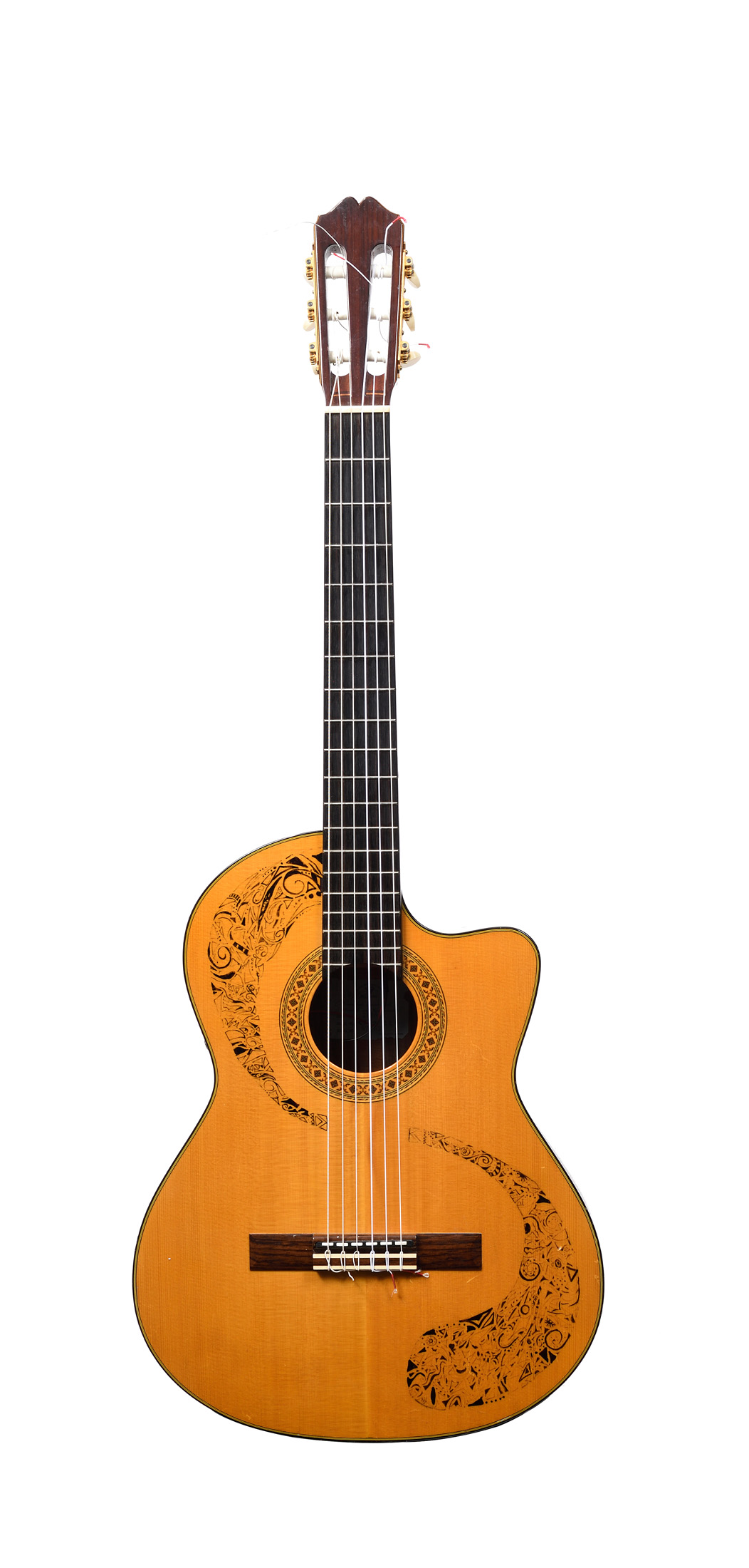 portant une étiquette "K. YAIRI" fait en 2006, modèle CY127CE. Pan coupé. Numéros de série: 57262. Fond et éclisses en palissandre. Table en épicéa. Bon état général. Avec boite.