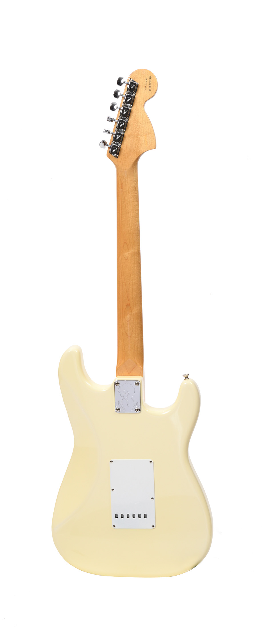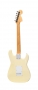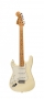 Guitare de gaucher monté en droitier. Edition limitée de 1996, début 97. Accastillage et électroniques d'origine. Made in USA TN703649. Vernis blanc cassé. Bon état général. Avec étui FENDER d'origine, tige de vibrato, cache corde.