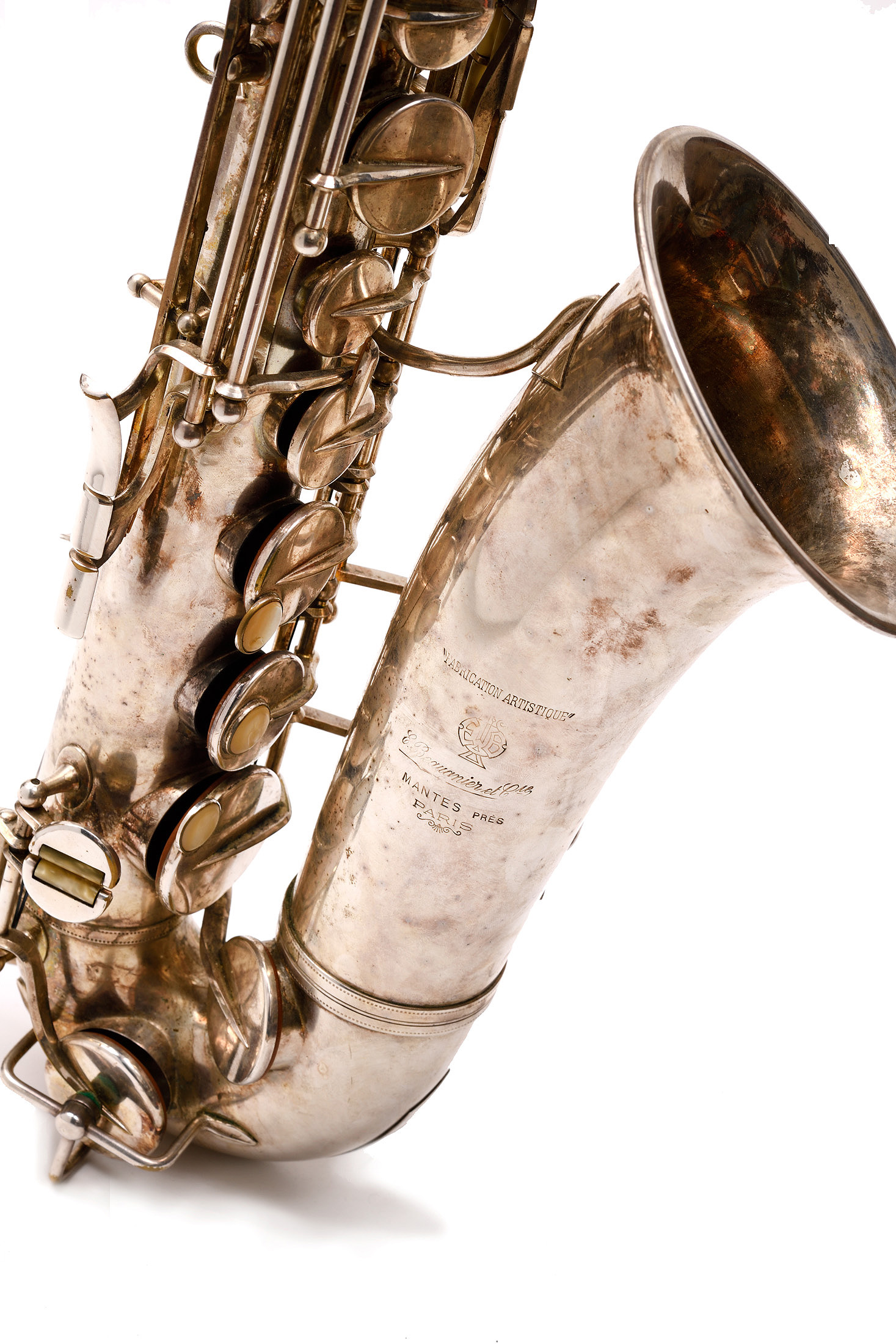 dont il porte la marque " E.BEAUGNIER et Co, Mantes Près Paris. Fabrication Artistique". Métal argenté. Bon état général. Avec boite et accessoires. Rayé et bossué.