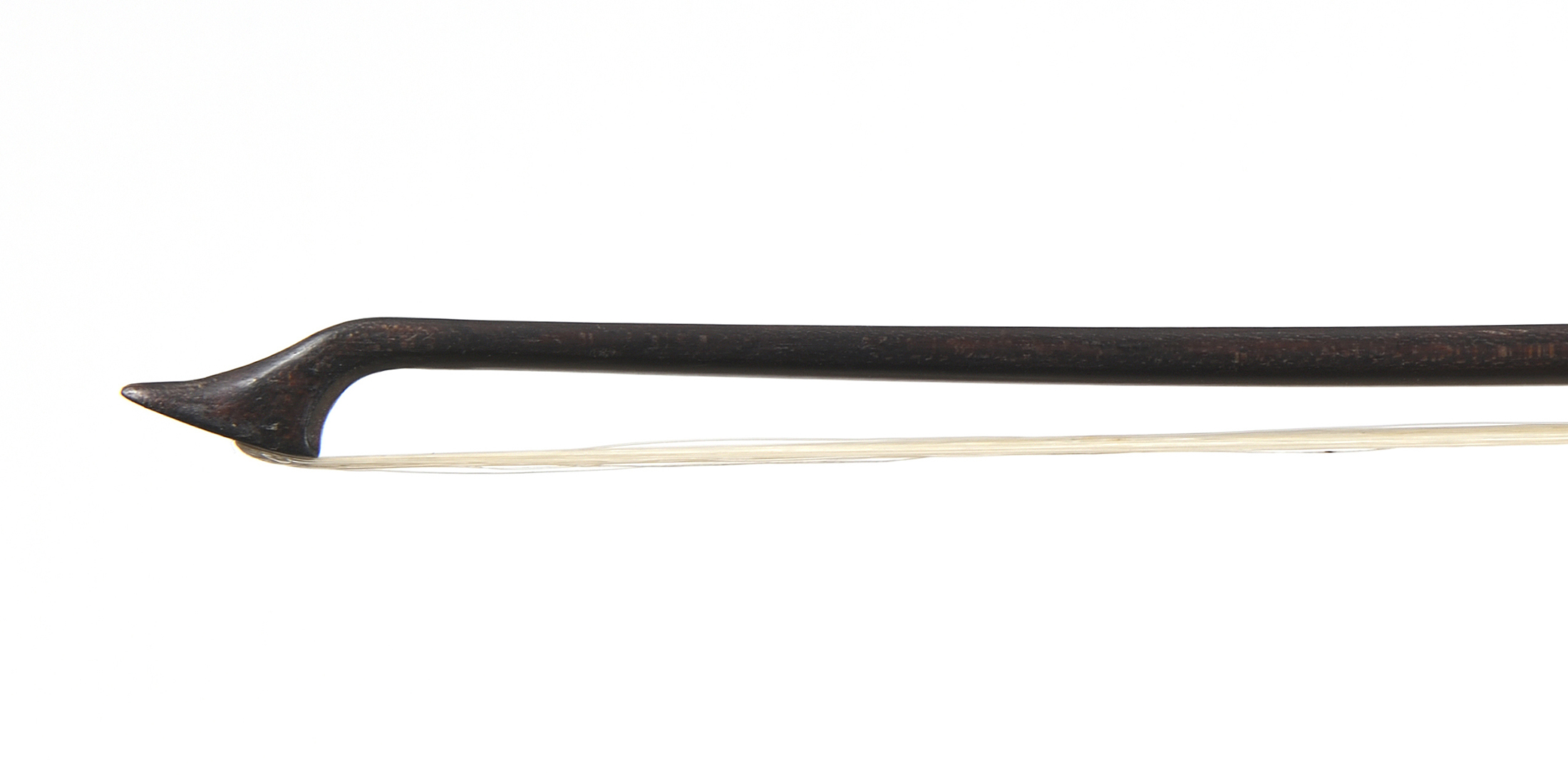 baguette ronde en amourette. Hausse en buis, bois sur bois. Bouton en os. 227 mm. 417 mm avec le bouton.