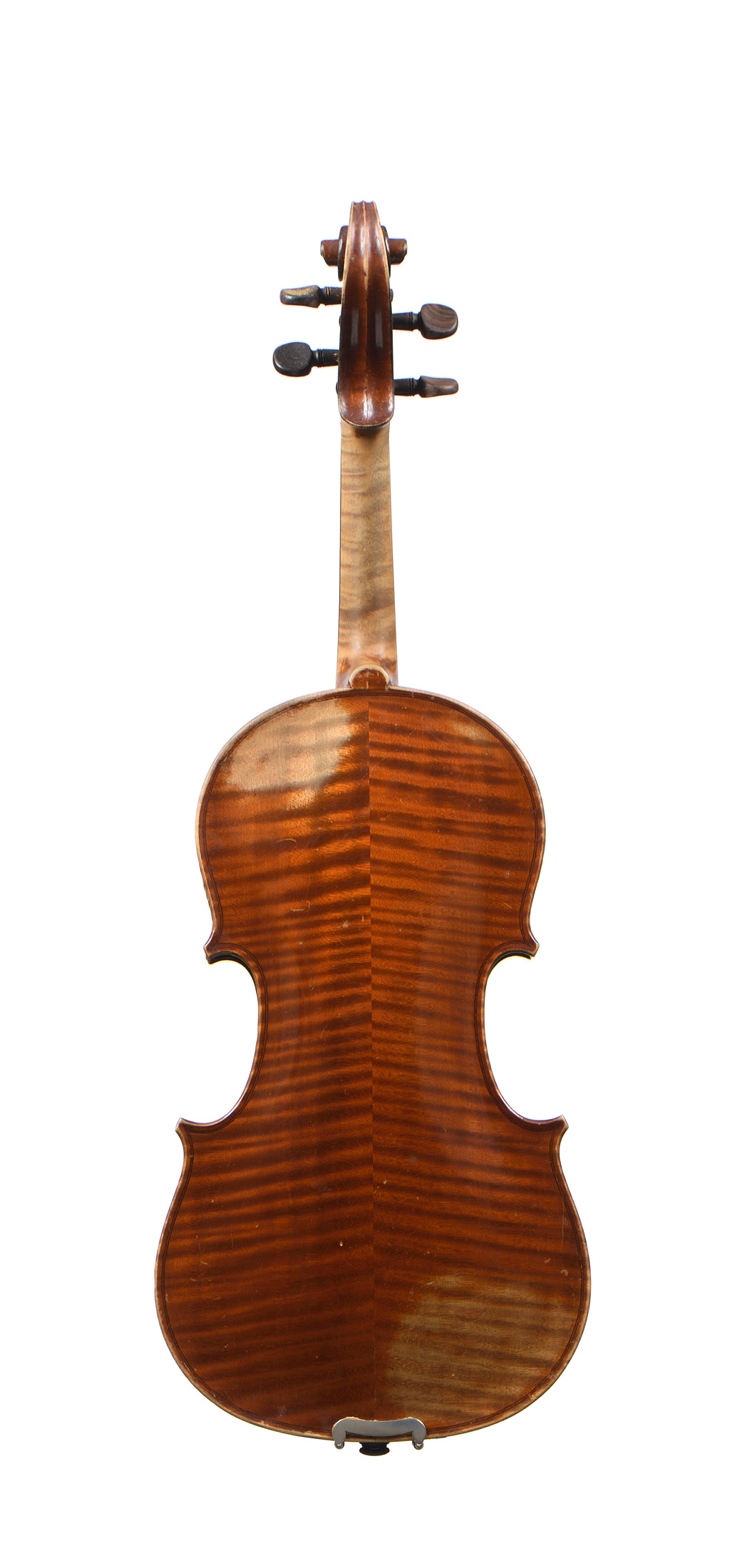 Beau violon fait à Mirecourt sur un modèle de Bernardel dont il porte une étiquette au millésime de 1858. Instrument fait vers 1900. Fond de deux pièces en bel érable. Table en épicéa aux pores serrés, réguliers. Une cassure au flanc du haut. Vernis brun sur fond doré. 358 mm.