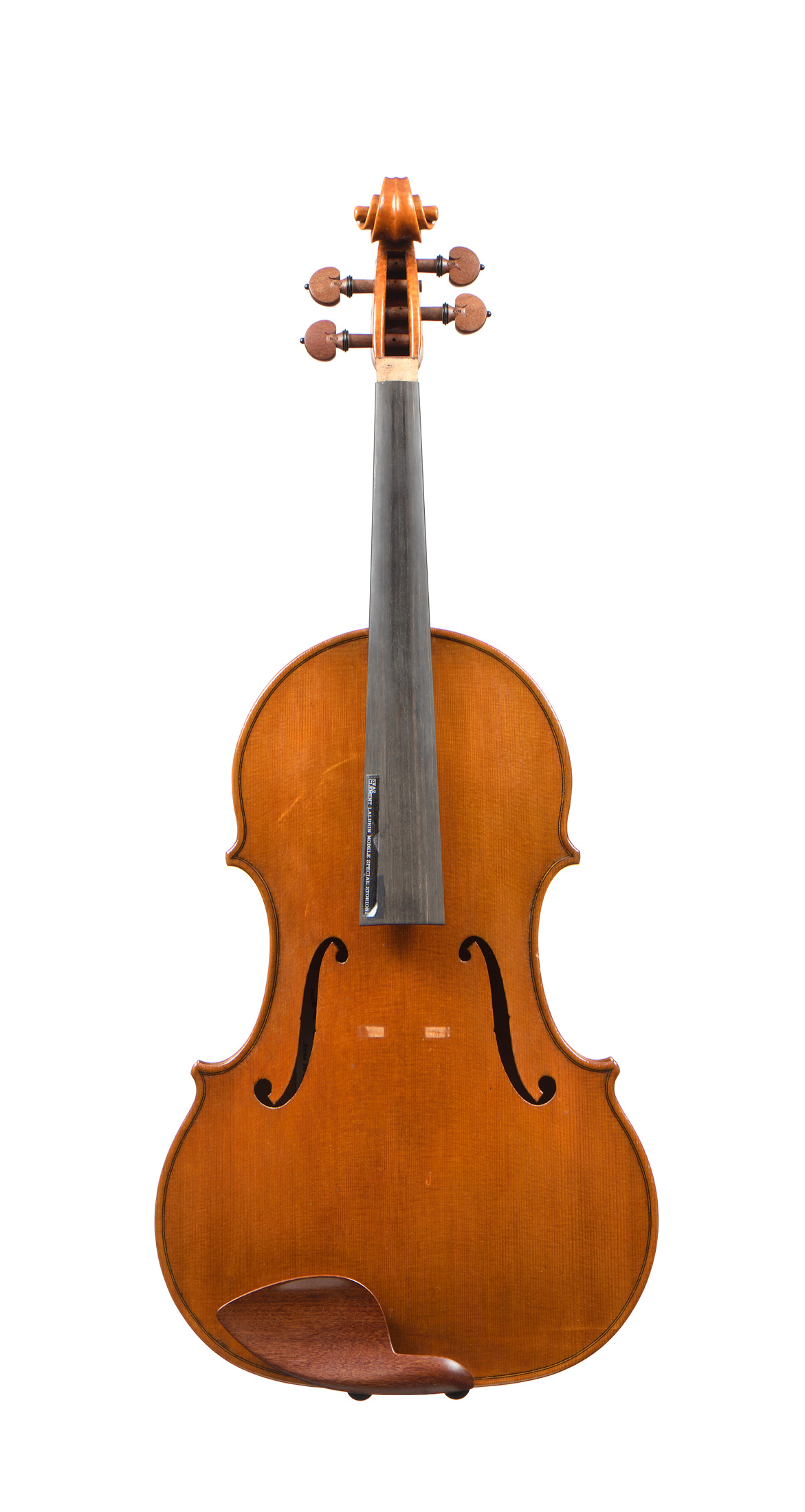 portant une étiquette " LALUBIN Clément. Storioni Anno 2008." et la marque au fer. Modele special Storioni. Fond de deux pièces en érable. Vernis brun doré. Parfait état. 422 mm.