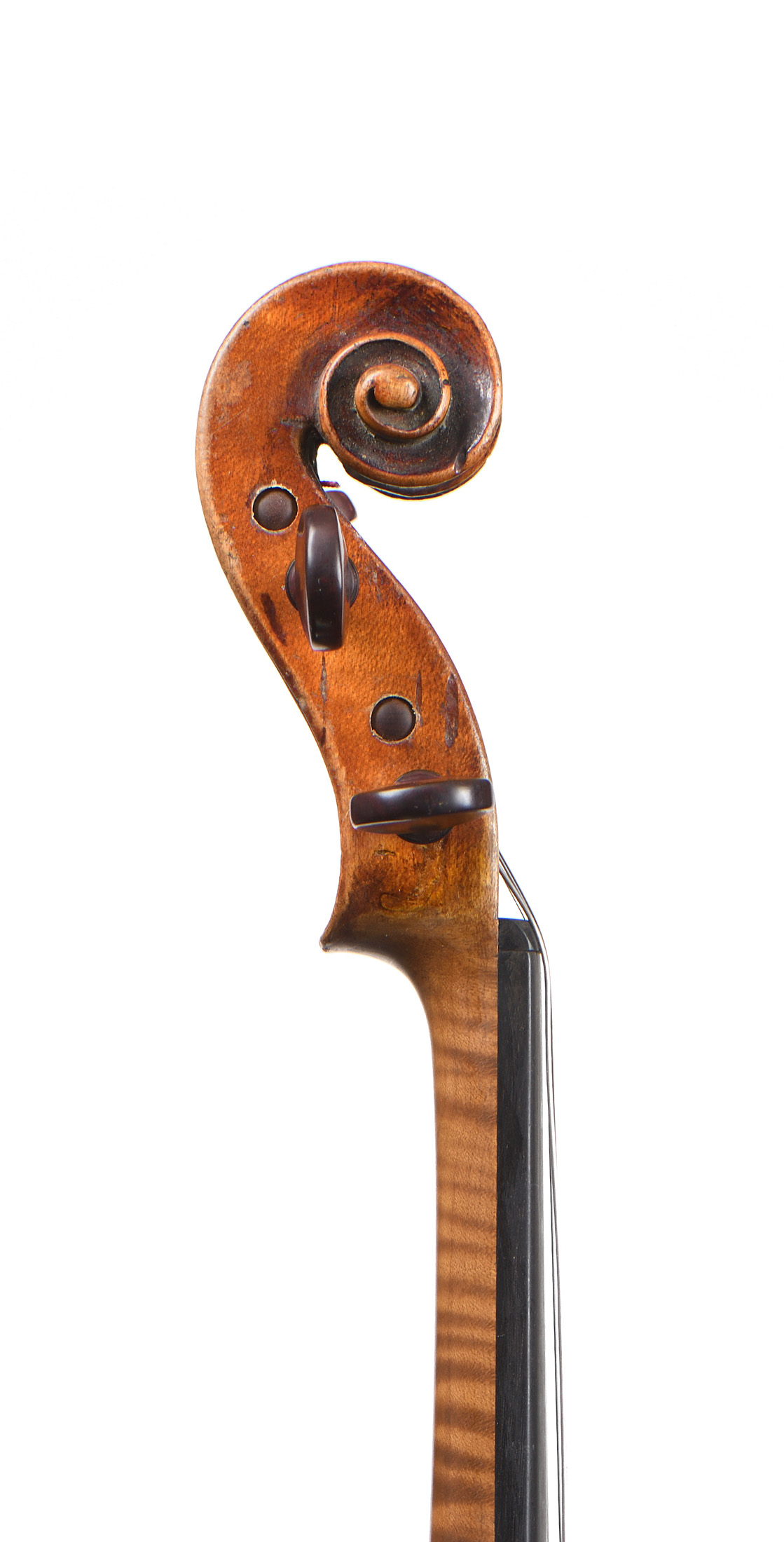 Vernis brun orangé sur fond doré, typique de cette grande école. Petite trace de vers restaurée. Une cassure à l'F. 396 mm.