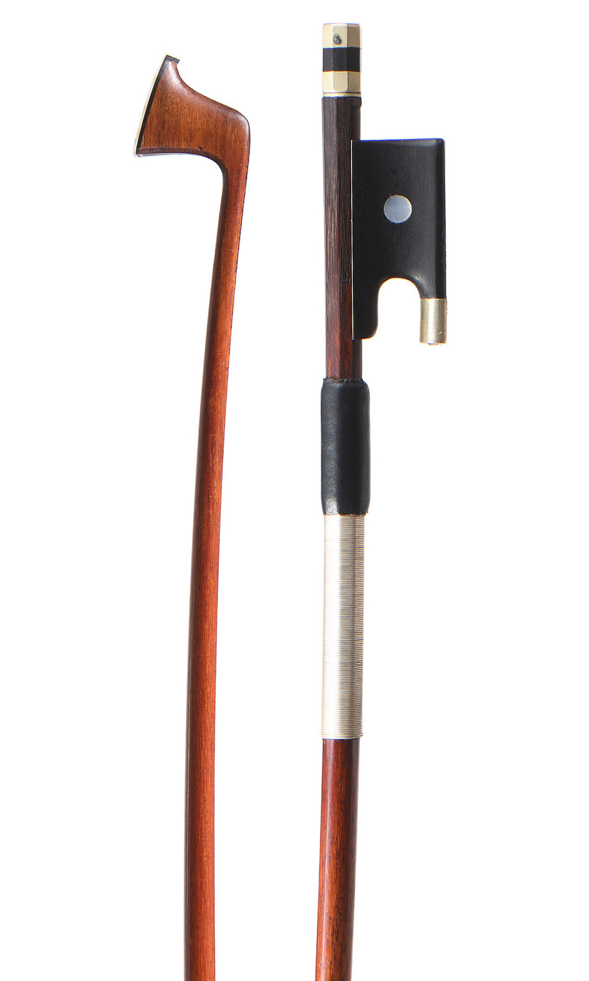 dont il porte la marque au fer PC. Baguette ronde en pernambouc. Hausse ébène modèle Vuillaume, monté maillechort. 53,6 g. 727 mm.