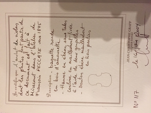 Avec certificat de Jean Christophe GRAFF. French Violin bow by François PECCATTE. Circa 1845. GRAFF certificate.