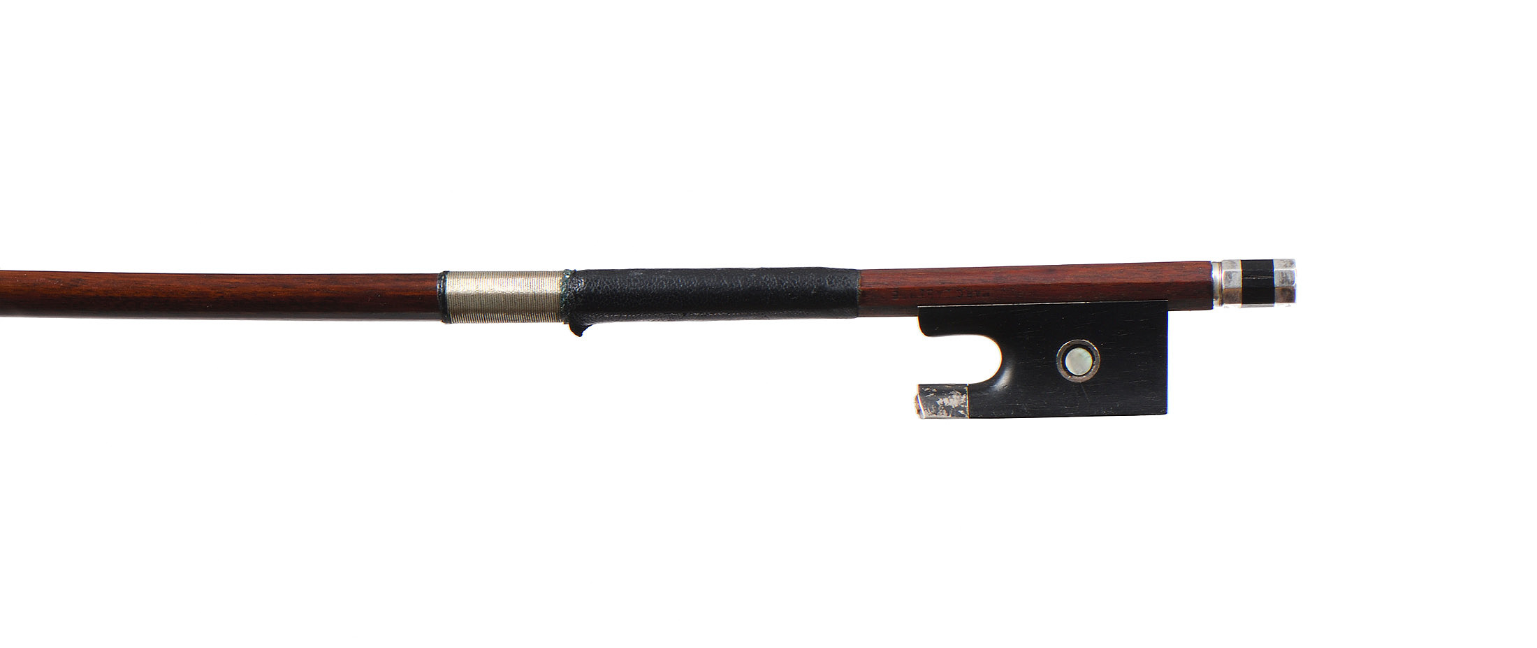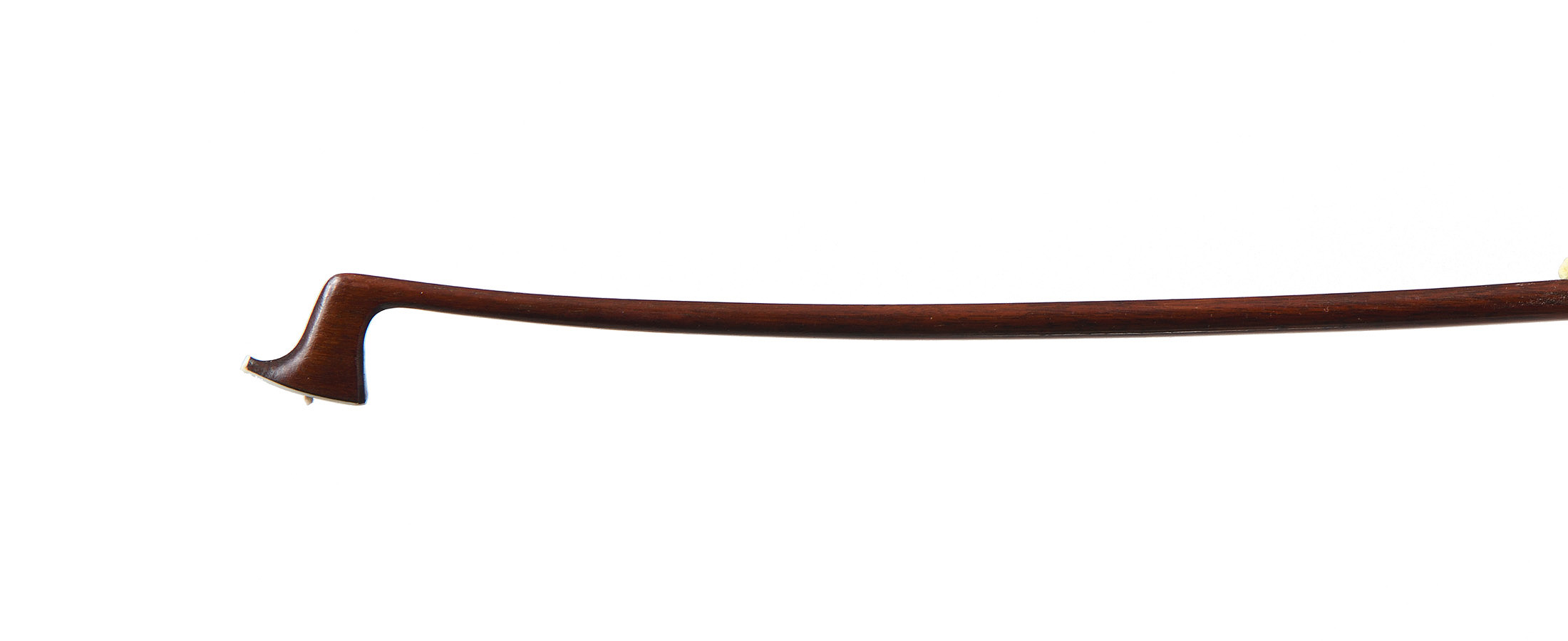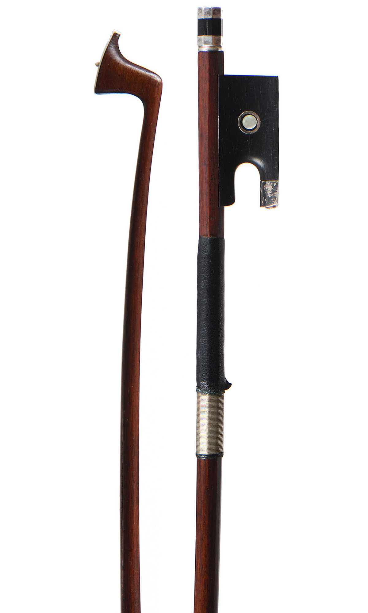 fait dans les ateliers de Marc LABERTE dont il porte la marque au fer. Baguette ronde en bois de pernambouc. Hausse ébène montée argent. 51,5 g. 730 mm.