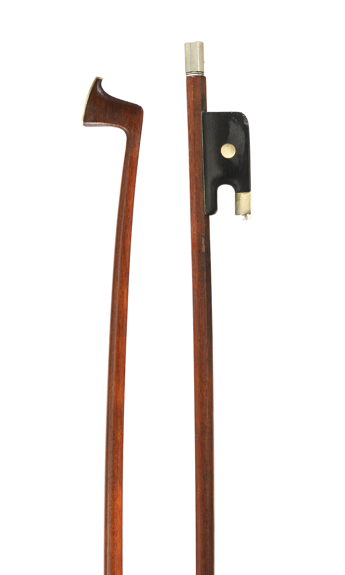 Baguette ronde en pernambouc. Hausse ébène montée maillechort. Bon état général.