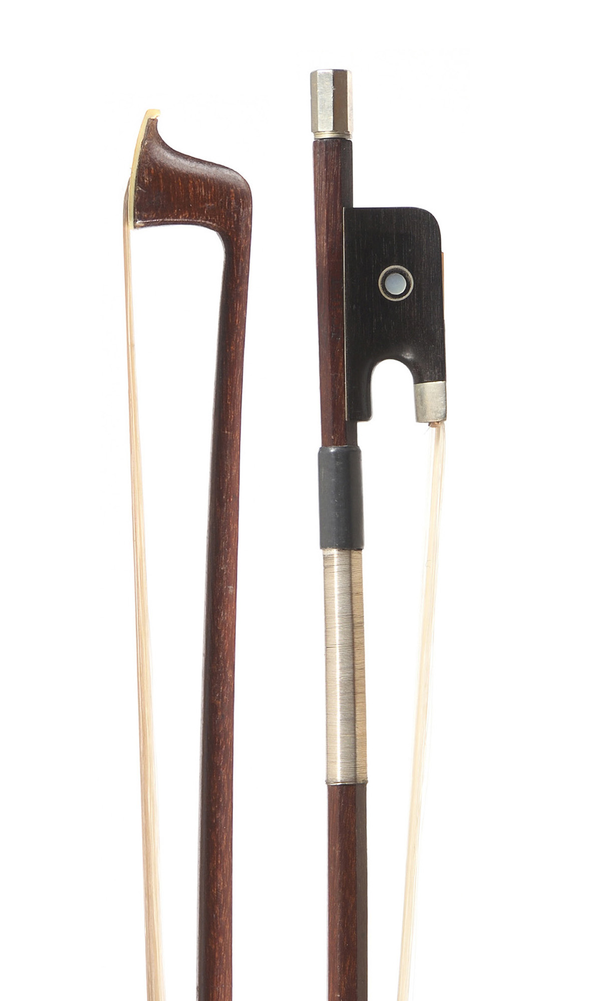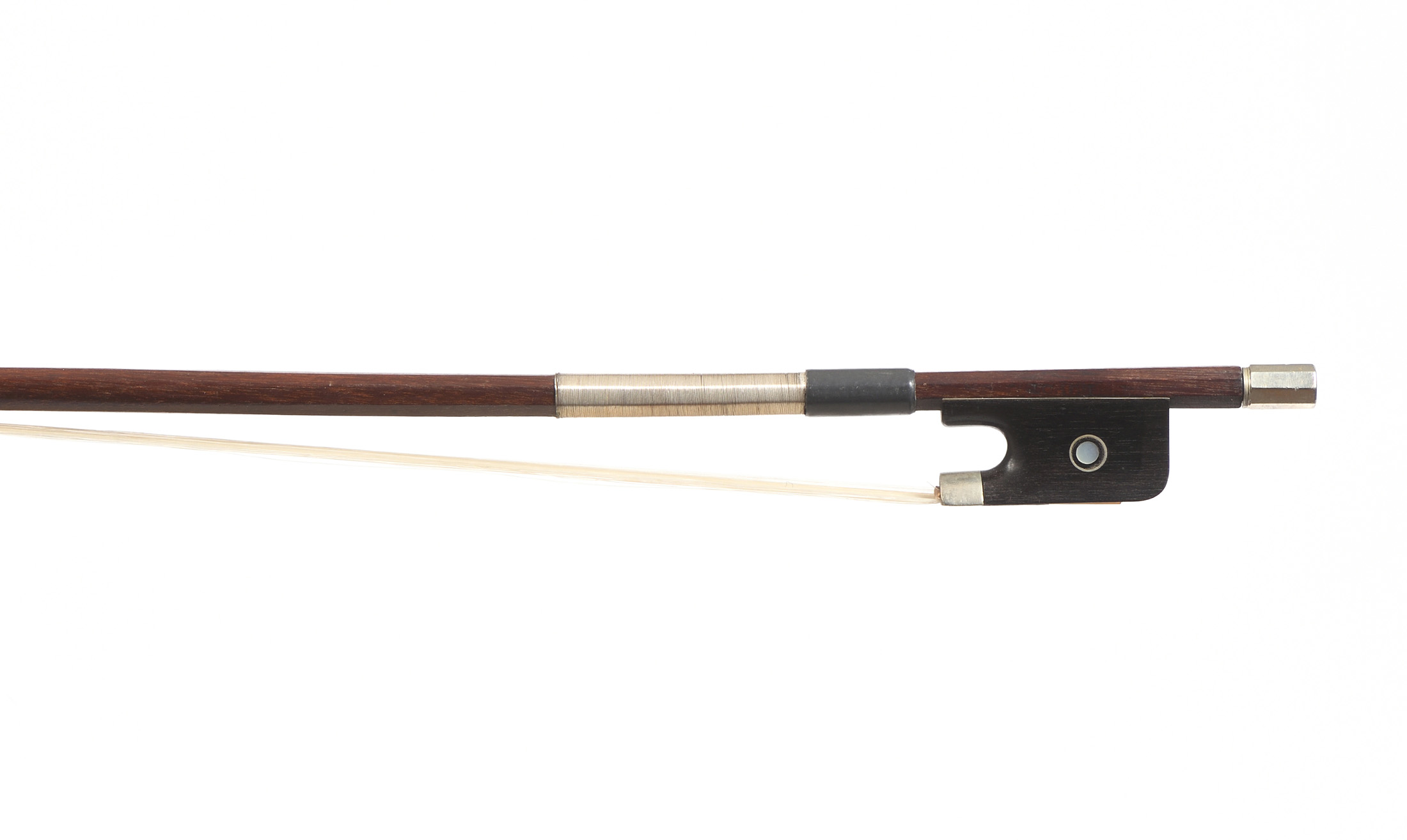 portant une marque LUPOT. Baguette ronde en bois d'abeille. Hausse ébène montée maillechort. Grain cerclé. 722 mm.