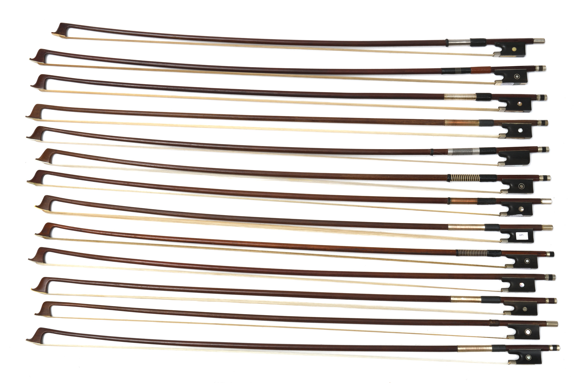 Lot de 13 archets ordinaires. Bois ordinaire. Différentes tailles. En l'état.