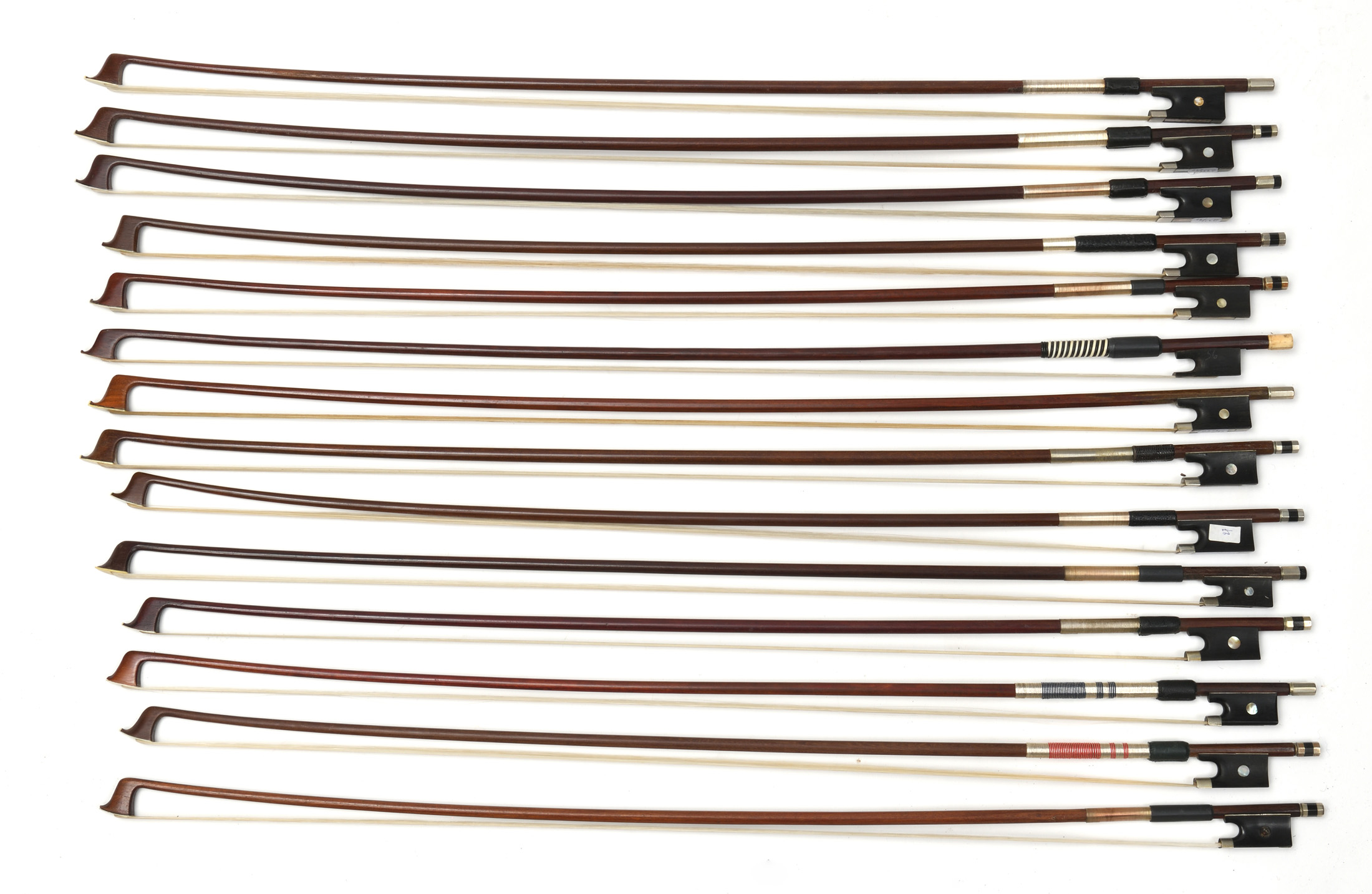 Lot de 14 archets ordinaires. Bois ordinaire. Différentes tailles. En l'état.