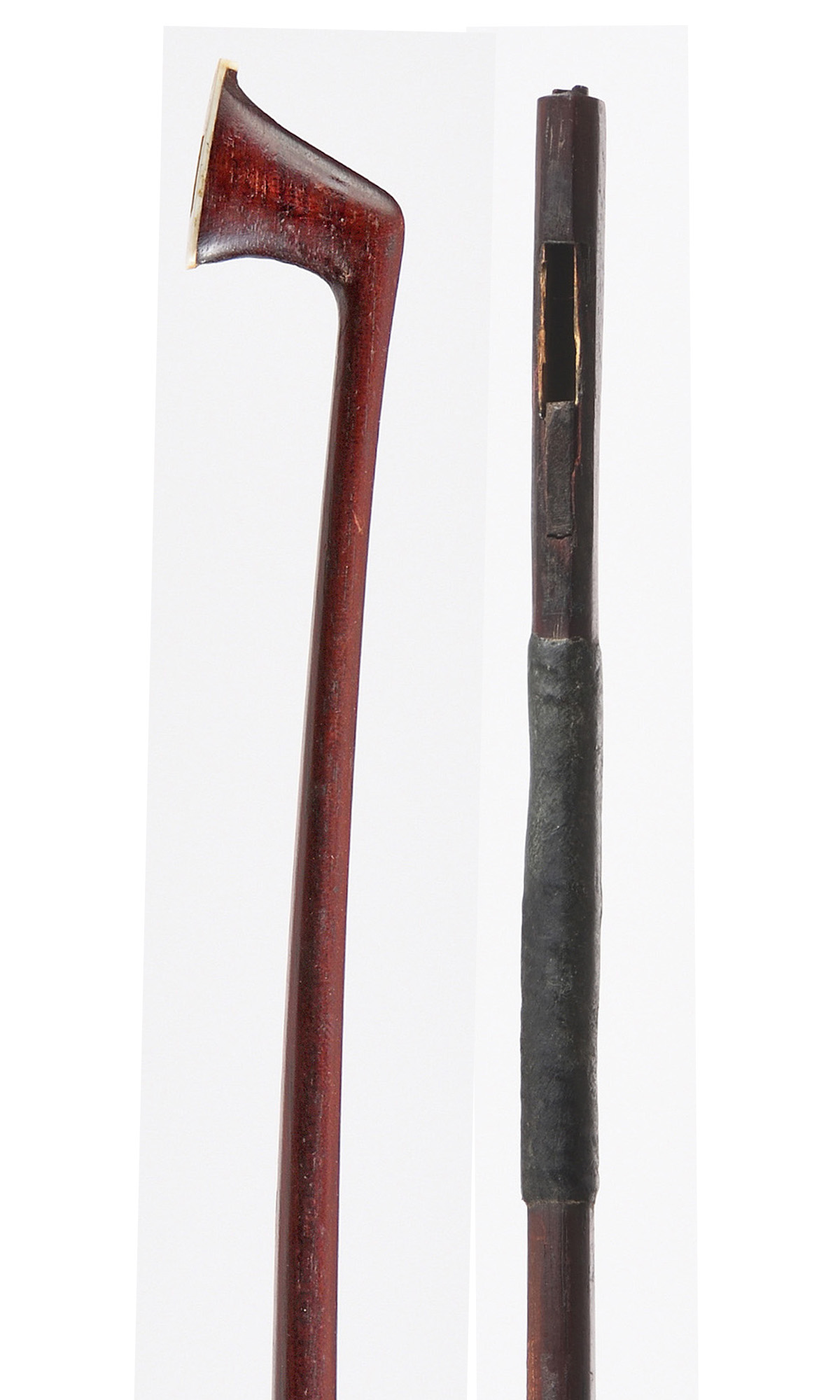 Baguette en bois d'amourette dans le style de duchêne. Accidenté au pan.