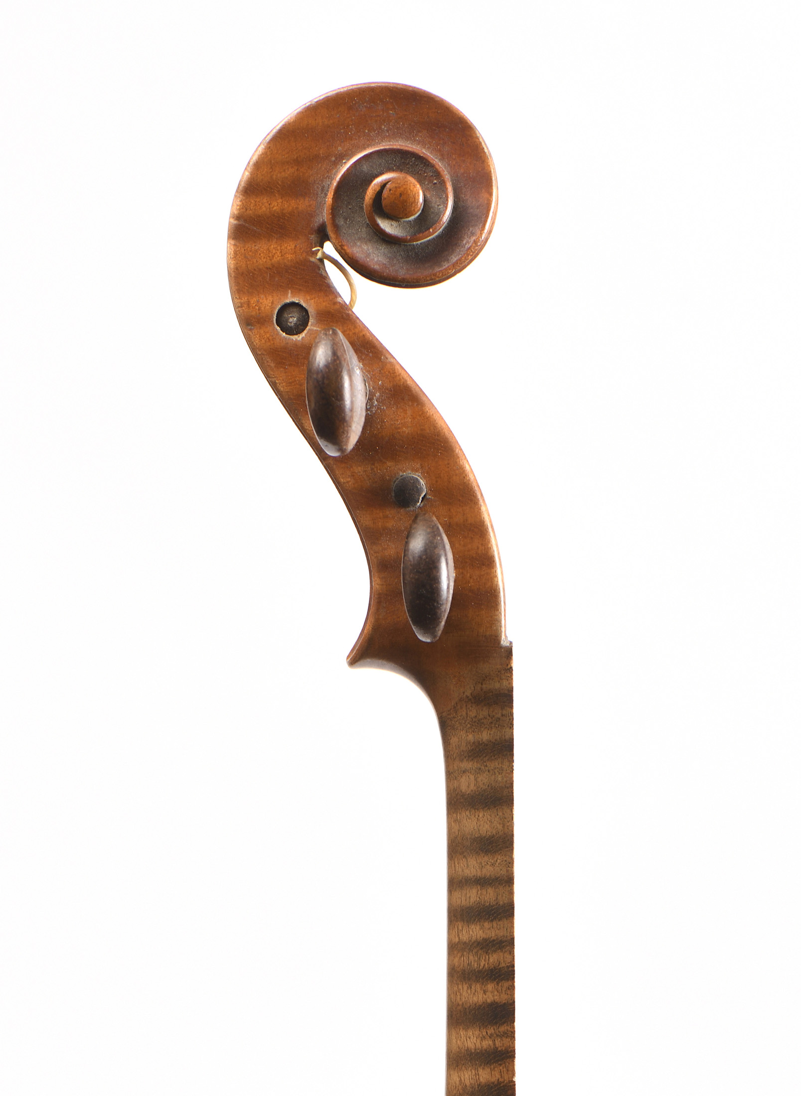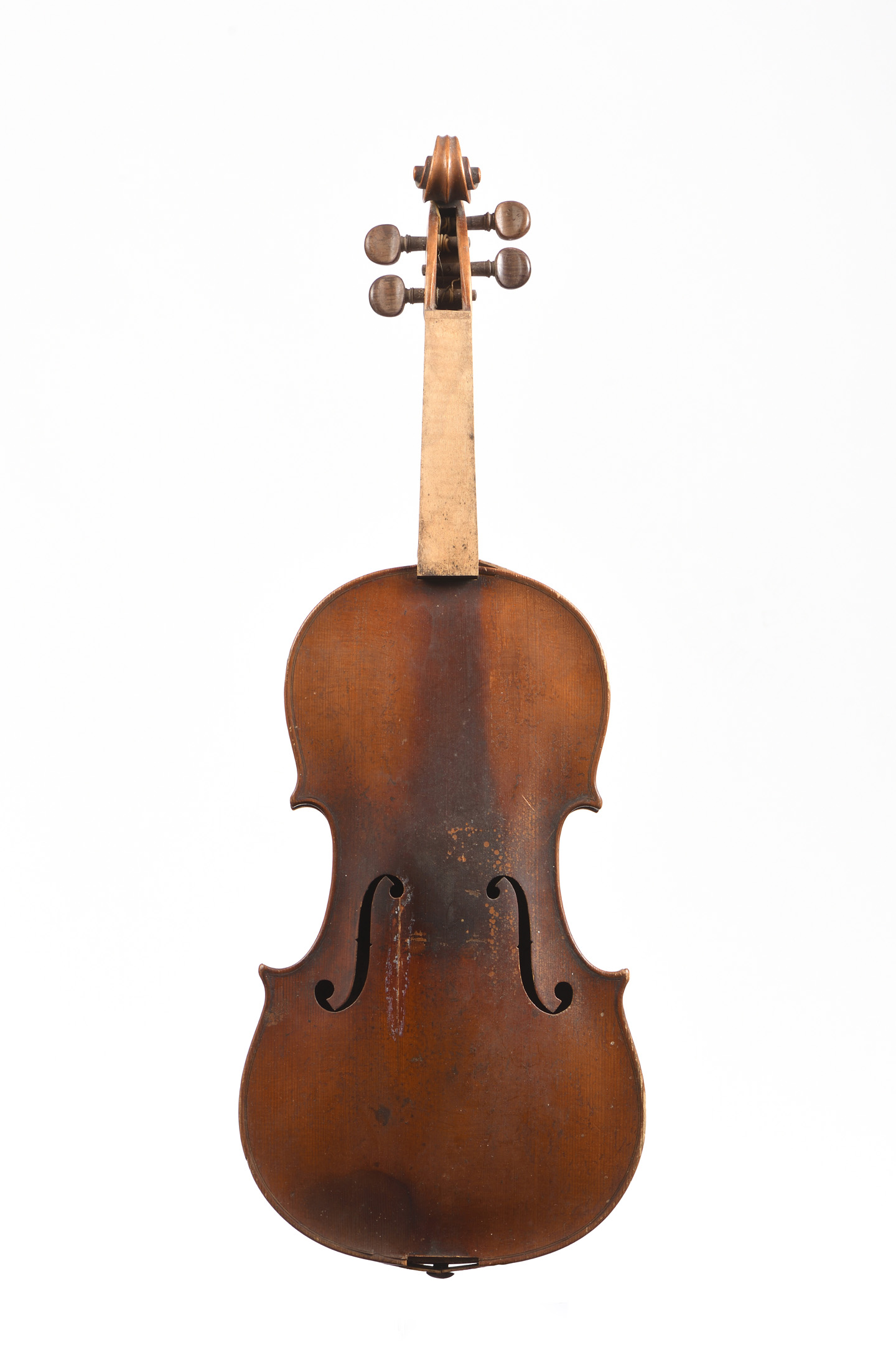 portant une étiquette "Copie de Francesco Ruggieri...1671". Vernis brun sur fond doré. 358 mm. L'ensemble est à restaurer: désenclaver.