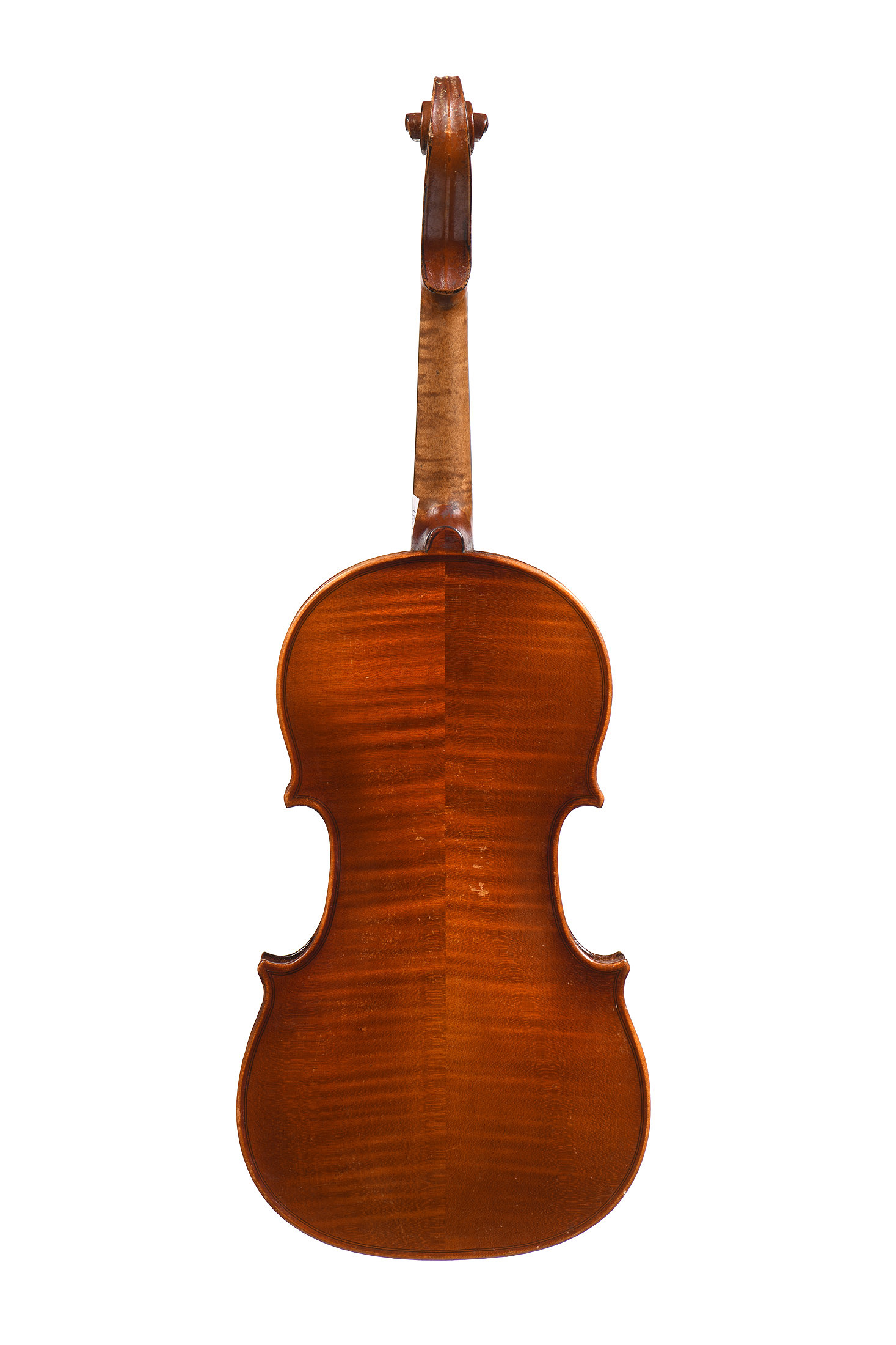 portant une étiquette apocryphe "Biagio CARUANA, 1922, Roma". Fond de deux pièces en érable. Eclisses et tête du même bois. Vernis brun orangé sur fond doré. Usures. Touche à revoir. Bon état général.