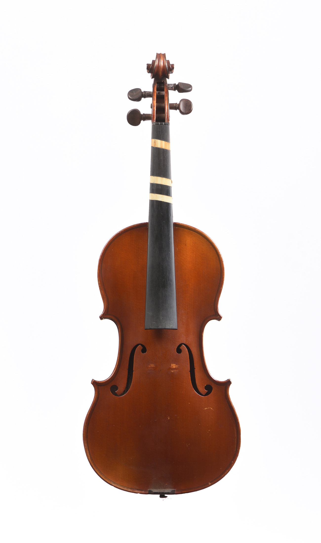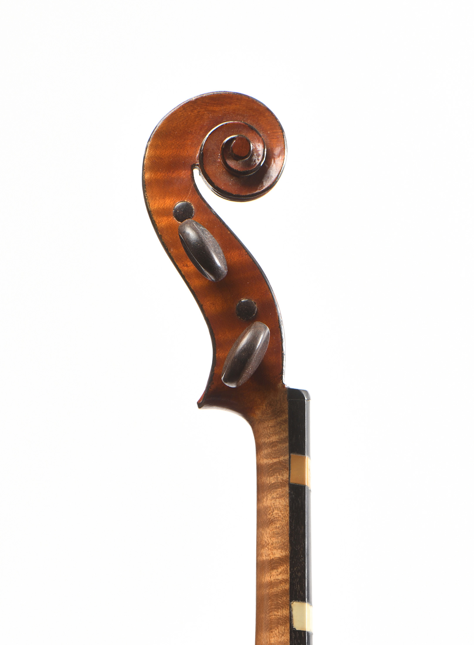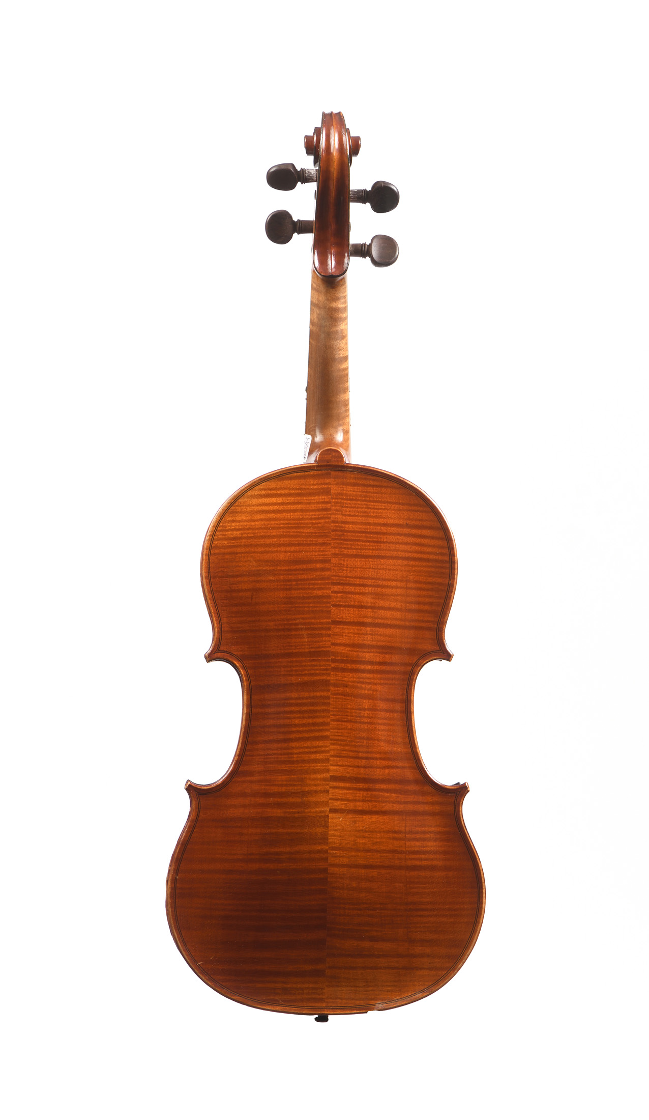 portant une étiquette "Copie de Antonius Stradivarius...1721". Fond de deux pièces en bel érable aux ondes marquées et