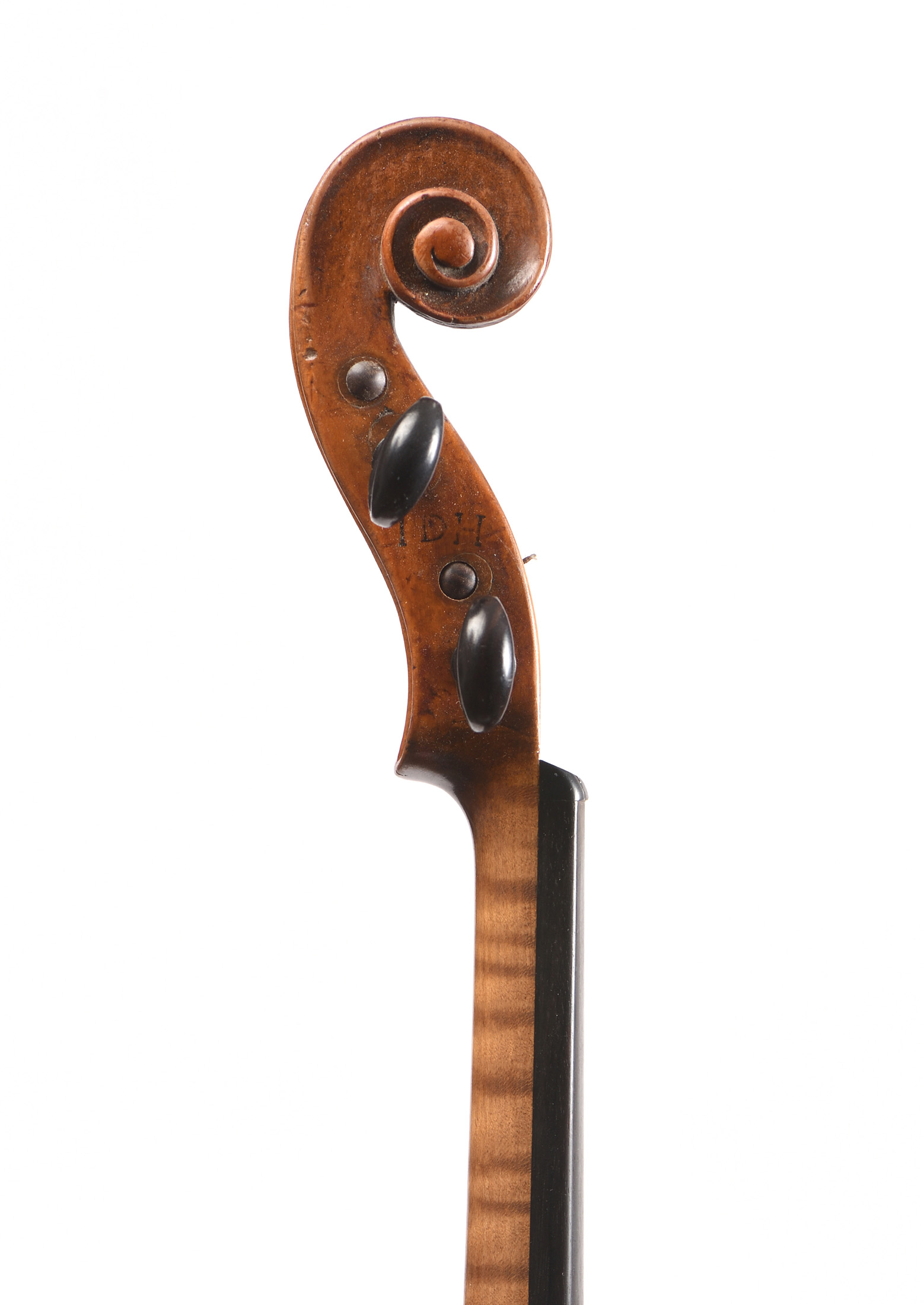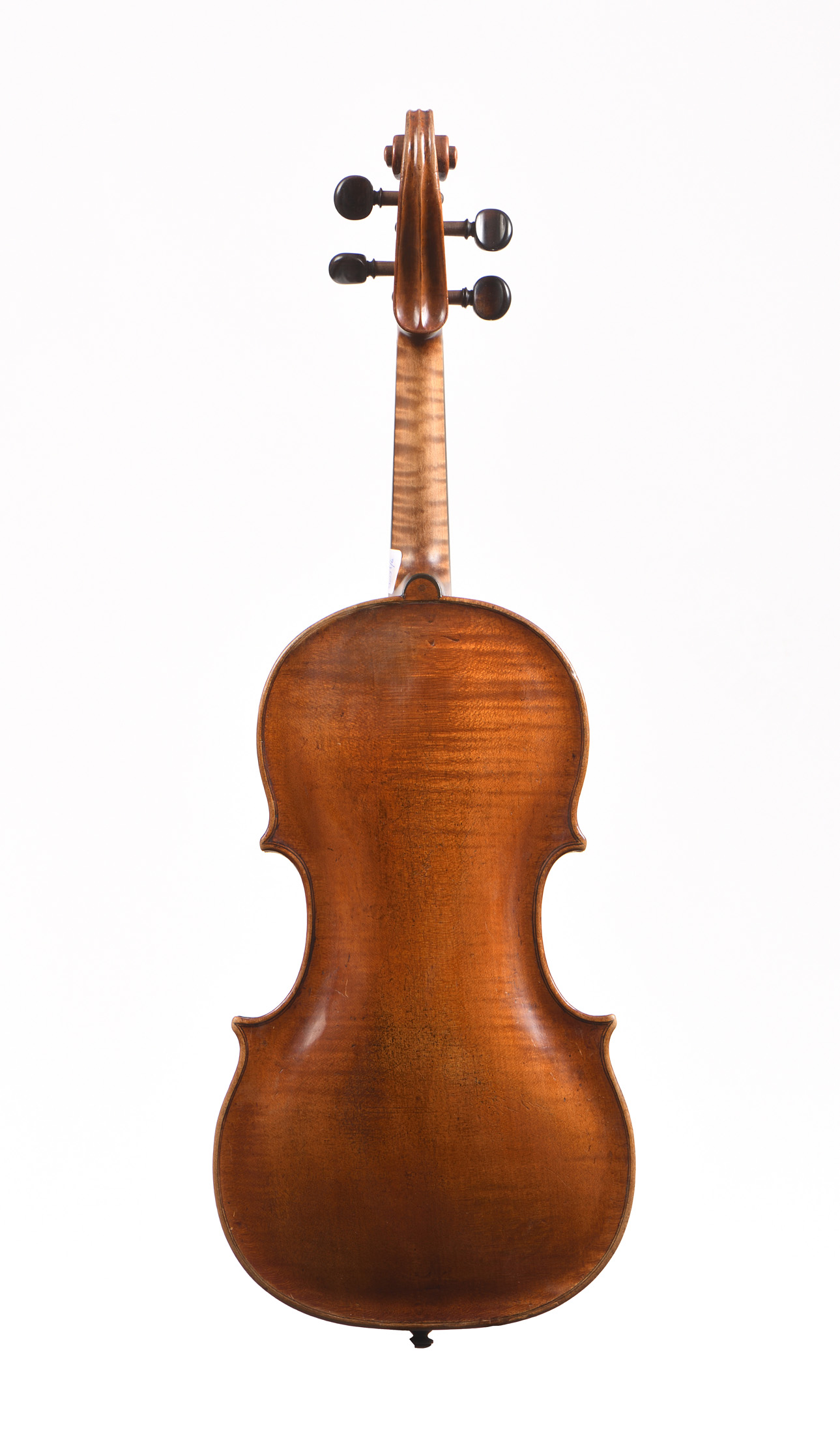 dont il porte l'étiquette "David Christian Hopf, Musicus instrumentalis Quittenbach, 17". Beau fond d'une pièce en érable. Table de deux pièces en épicéa. Vernis brun sur fond doré. Cassures d'âme à la table et au fond restaurées. Diverses cassures. 360 mm.